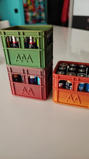 Držák baterií AAA v designu pivní přepravky – Stohovatelné úložiště