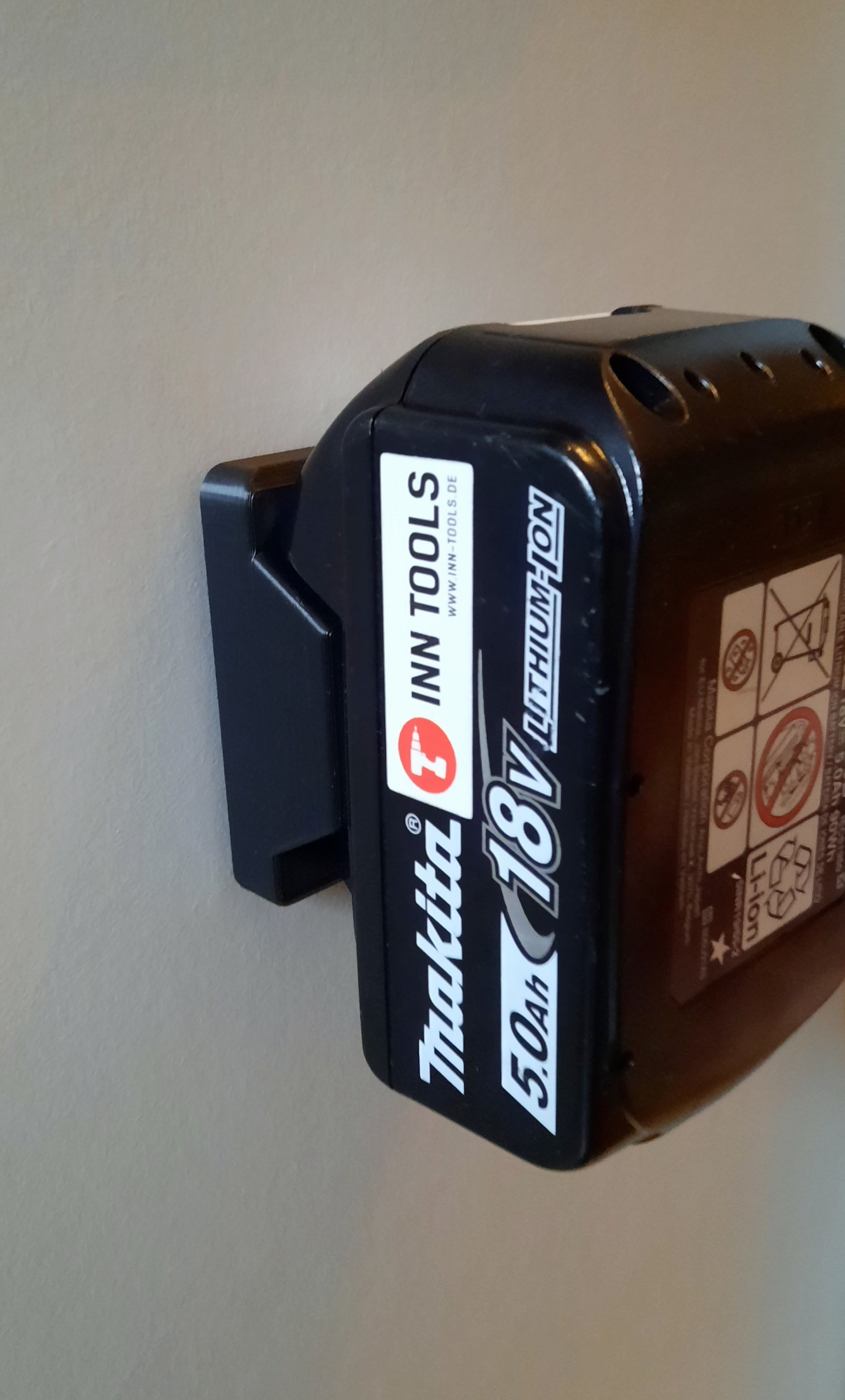 Držák akumulátoru Makita pro 18V akumulátor. Držák lze namontovat přímo na stěnu pomocí 4 šroubů nebo na desku s 1' otvorem. Akumulátor Makita 18V pak lze snadno umístit do držáku pro snadný přístup a úklid dílny, kůlny nebo pracovního vozíku.