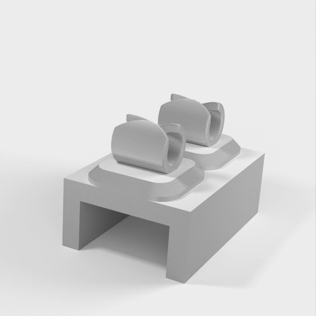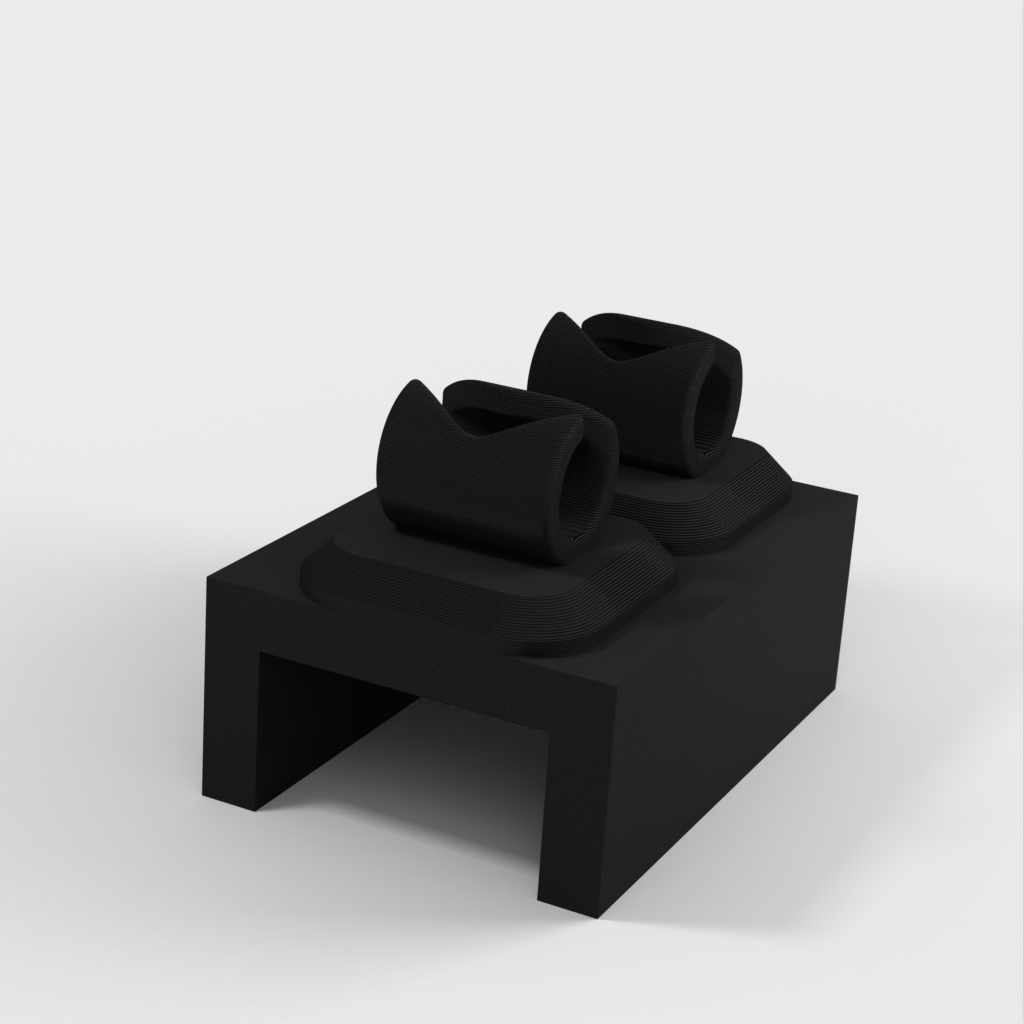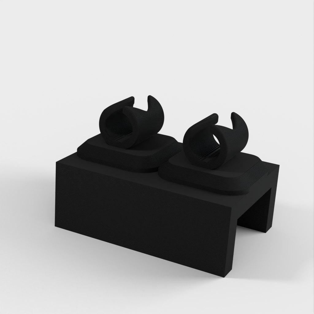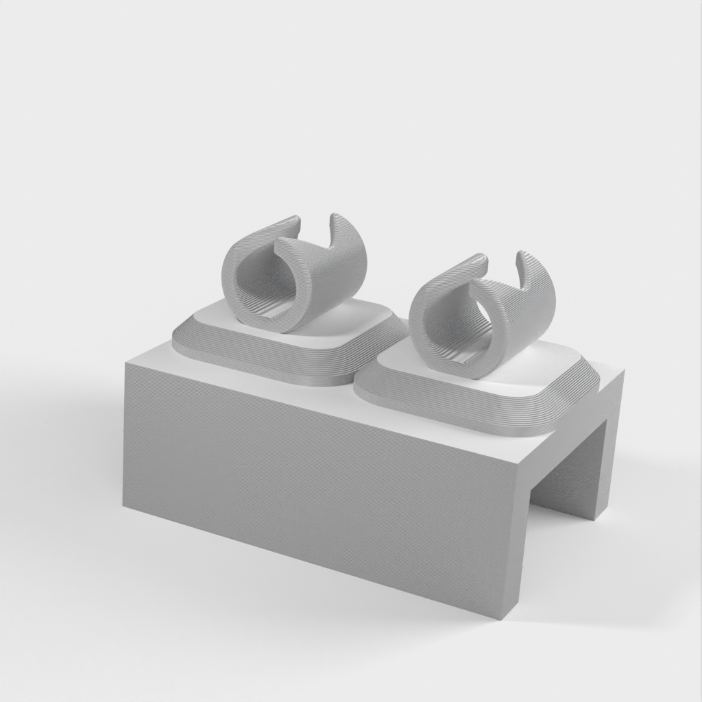 Jedná se o jednoduchý držák kabelů, který slouží k uspořádání a oddělení kabelů. Lze jej snadno připevnit na stěnu pomocí šroubů a vytvořit tak uklizený pracovní prostor. Držák kabelů je potištěn jedinečným fialovým hedvábím PLA, které dodá vašemu pracovnímu prostoru barevný nádech.
