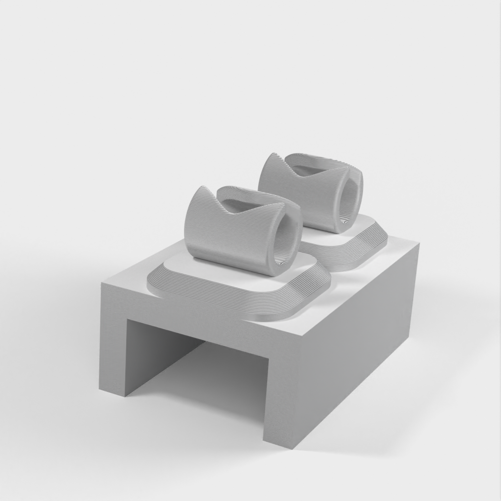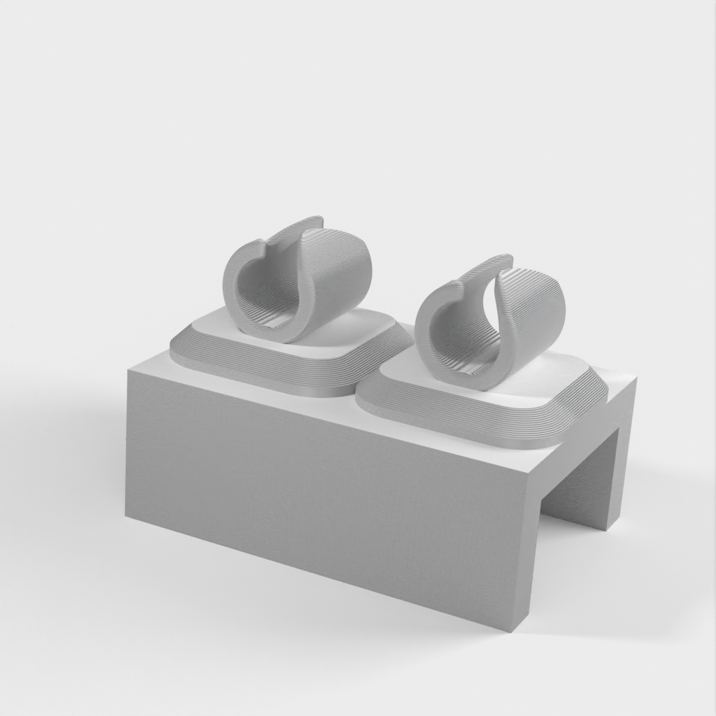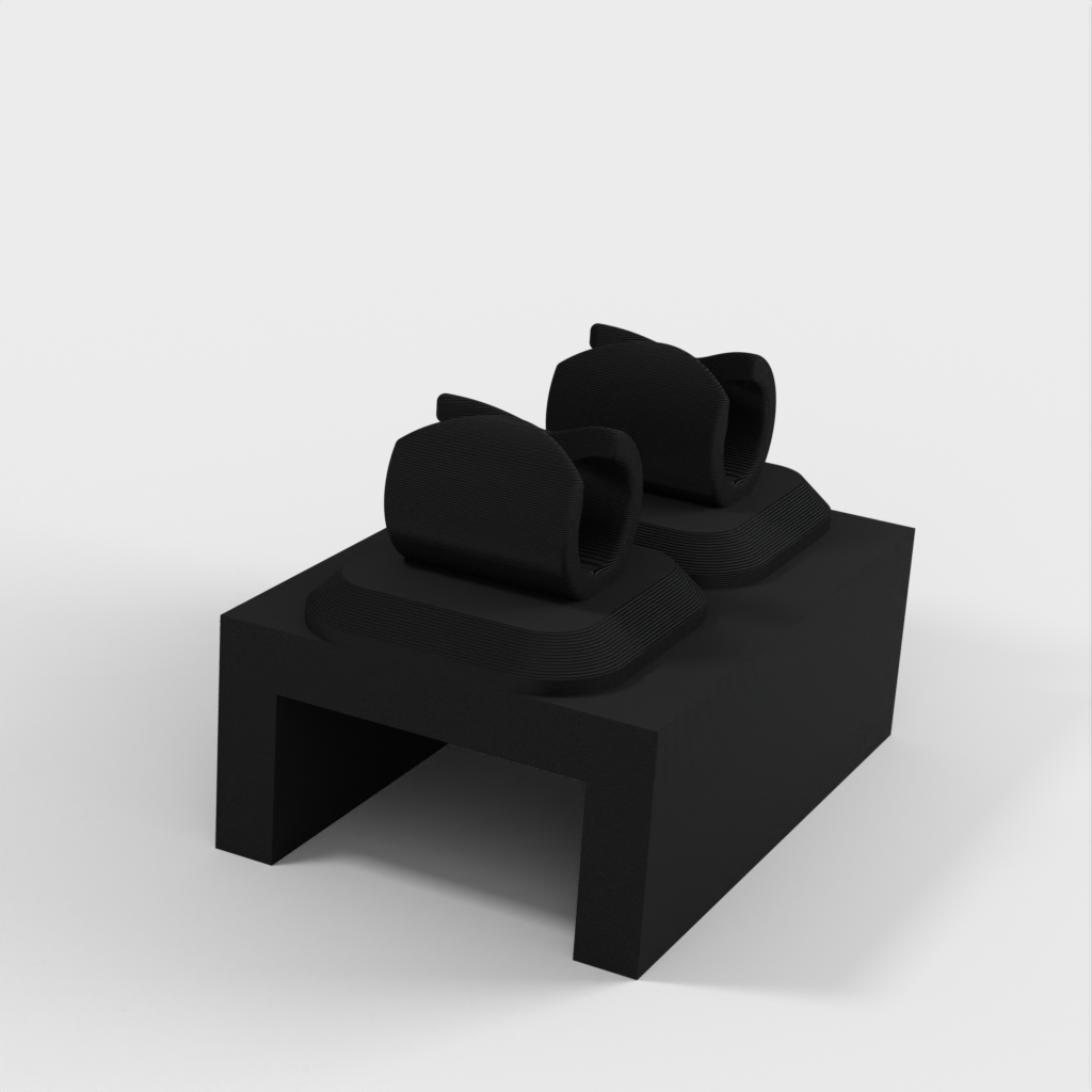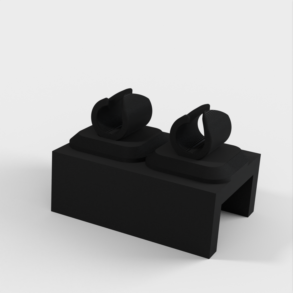 Jedná se o jednoduchý držák kabelů, který slouží k uspořádání a oddělení kabelů. Lze jej snadno připevnit na stěnu pomocí šroubů a vytvořit tak uklizený pracovní prostor. Držák kabelů je potištěn jedinečným fialovým hedvábím PLA, které dodá vašemu pracovnímu prostoru barevný nádech.