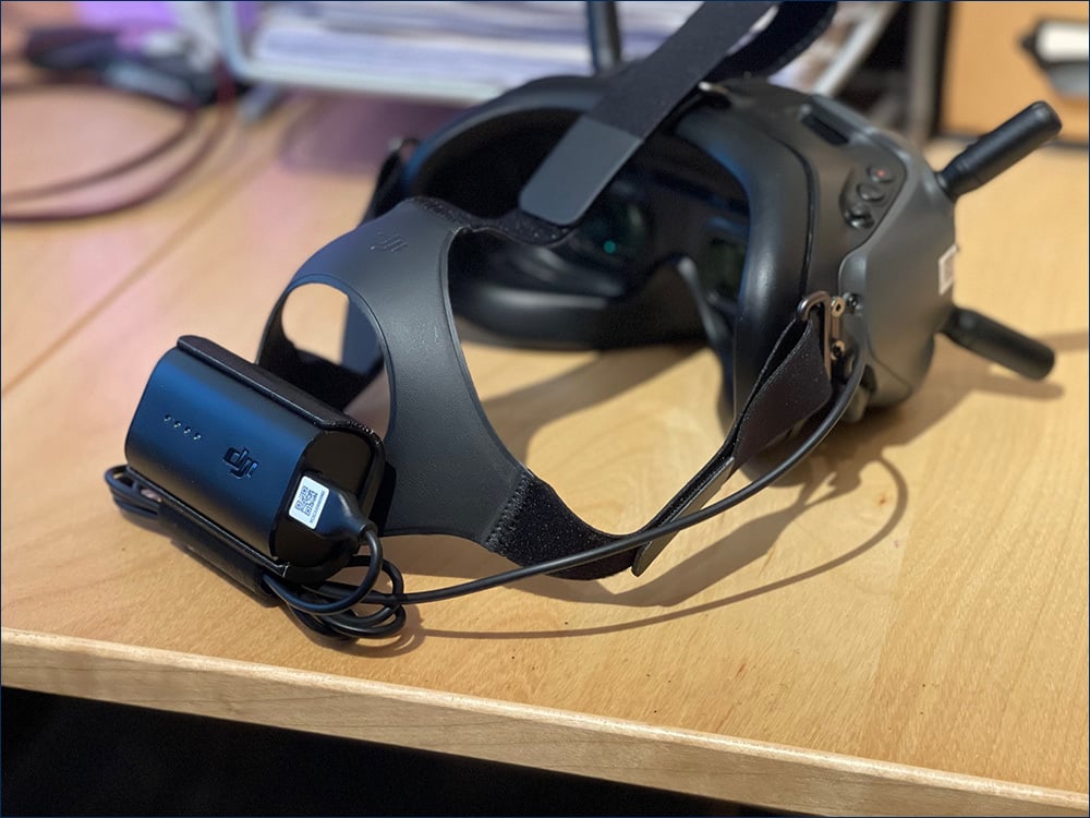 Kromě zajištění baterie přidává hmotnost držáku výhodnou protiváhu. To přispívá k udržení stabilnějšího hlavového popruhu na místě a usnadňuje naklopení brýlí DJI FPV Goggles V2 na čelo, aniž by spadly zpět.