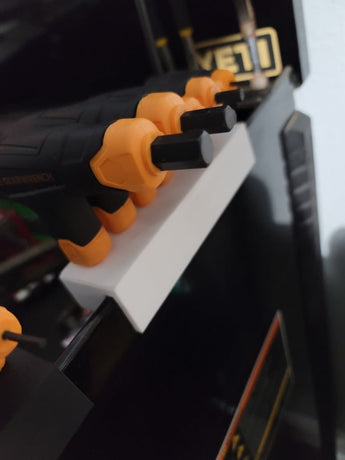 Tento držák je navržen pro efektivní uložení vašich imbusových klíčů s T-rukojetí a snadno se montuje na stranu vaší sady nářadí. Účelem je udržovat vaše nástroje uspořádané a na dosah, což usnadňuje rychlé nalezení správného imbusového klíče během vaší práce. Držák zajišťuje, že jsou vaše imbusové klíče chráněny před opotřebením, a minimalizuje riziko jejich ztráty, když se nepoužívají. Nabízí praktické a prostorově úsporné řešení pro profesionály i hobby uživatele, kteří chtějí udržovat pořádek ve svém arzenálu nástrojů.