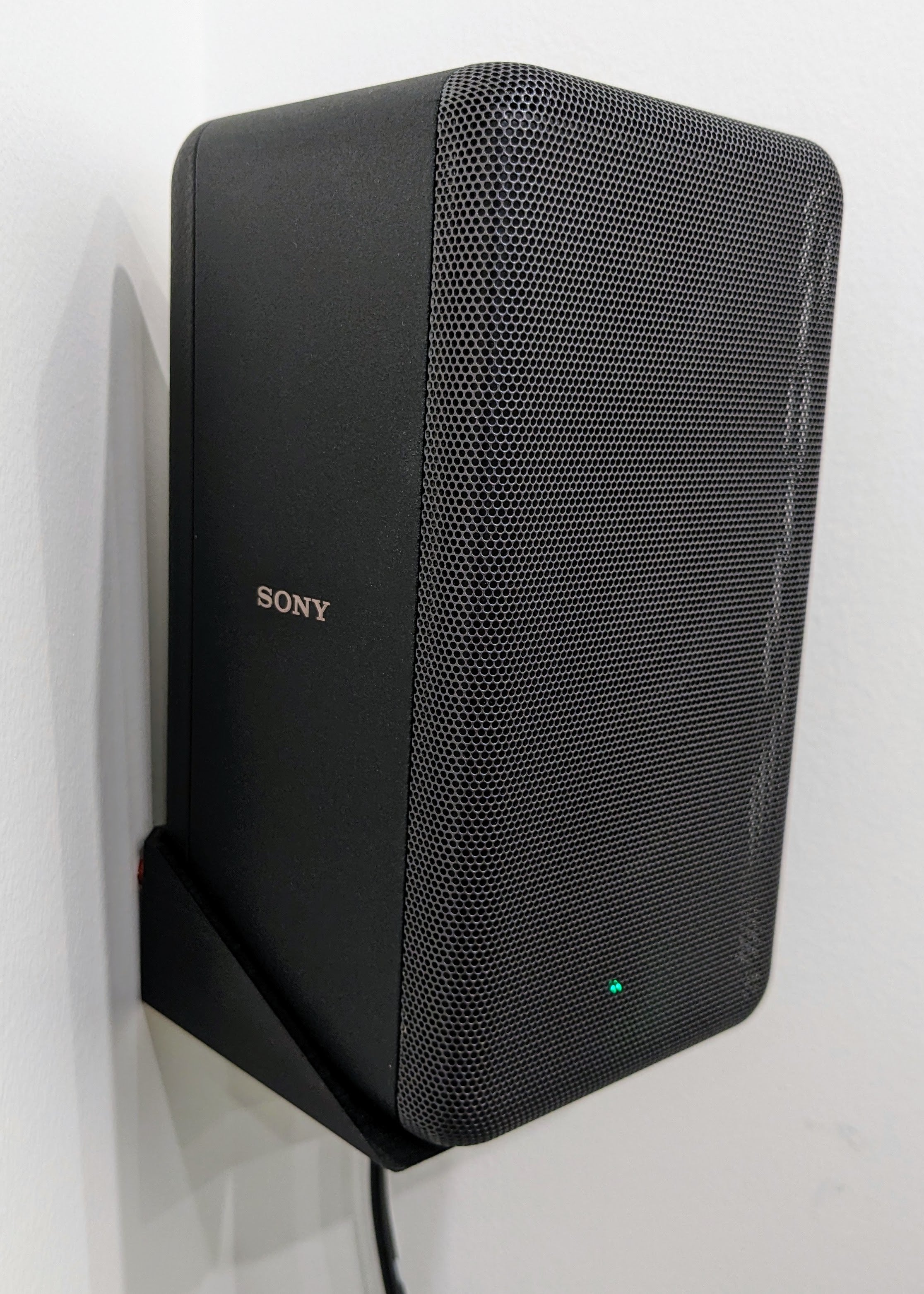 Tento nástěnný držák je navržen tak, aby poskytoval optimální a prostorově úsporné umístění vašeho zadního reproduktoru Sony SA-RS3S v jakékoli místnosti. Využitím rohů místnosti můžete dosáhnout nejlepšího rozptylu zvuku a zároveň uvolnit podlahovou plochu.