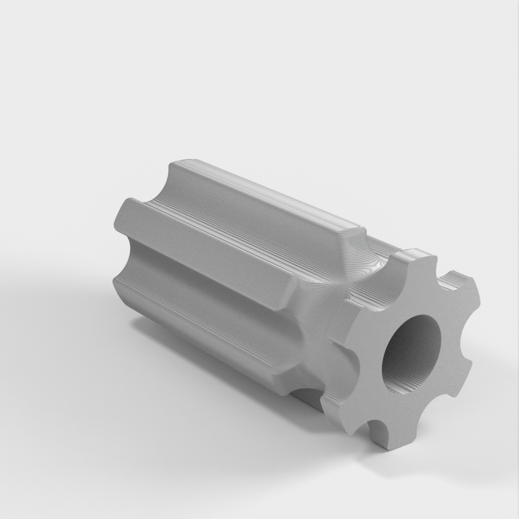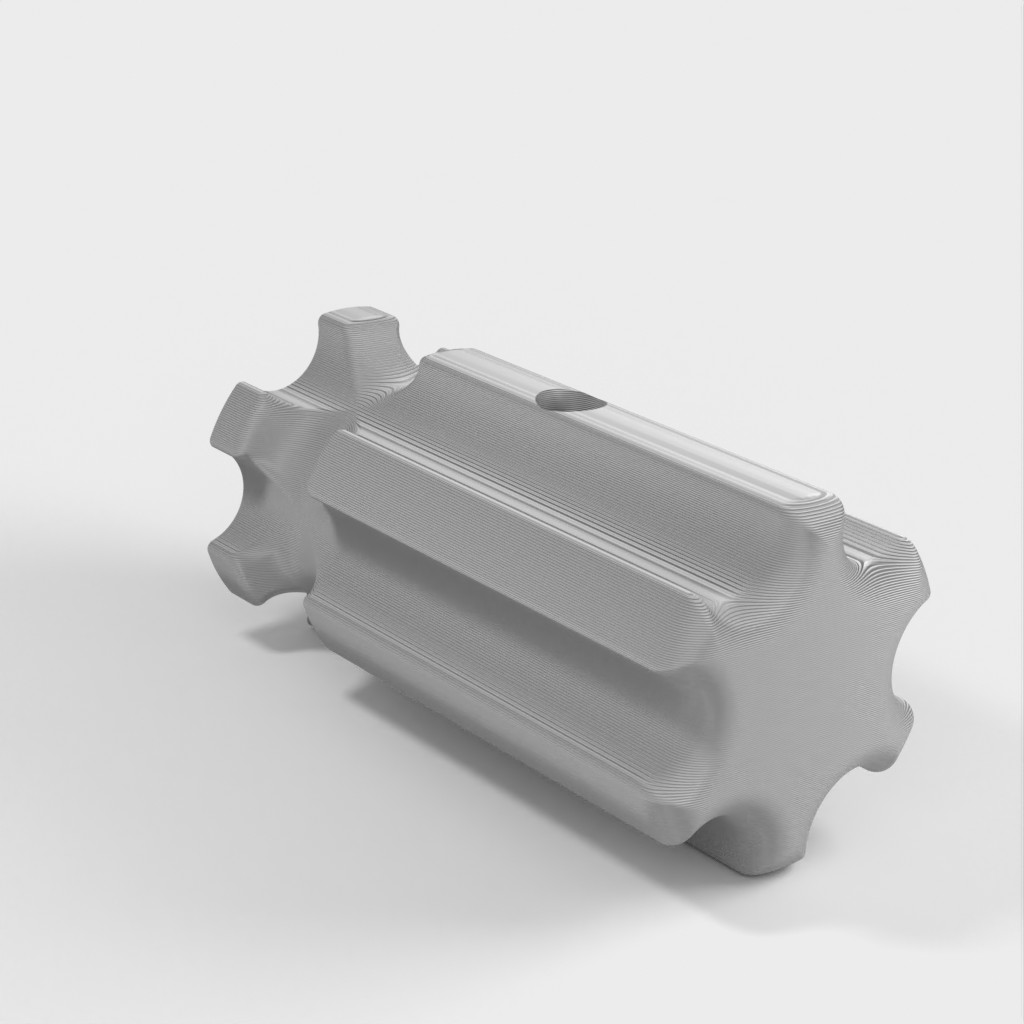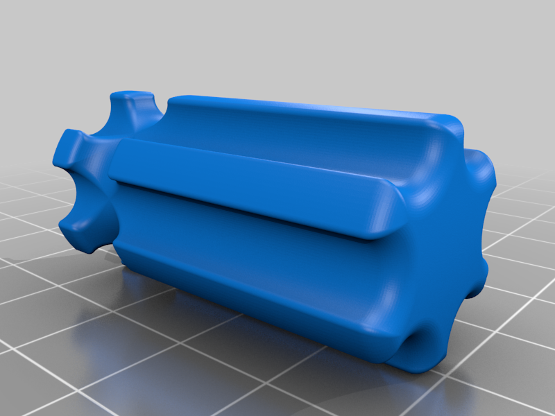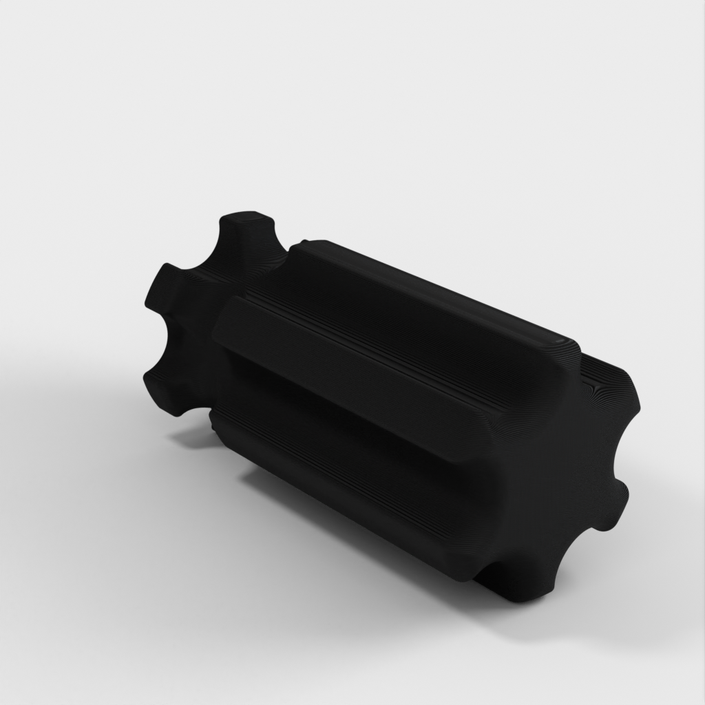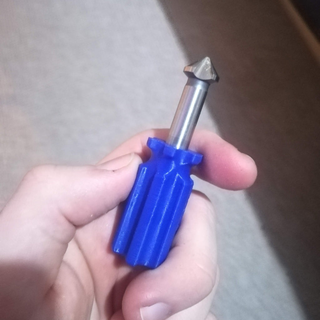Držák na nářadí určený pro pohodlnou manipulaci s brusnými nástroji. Lze jej použít na dřevo i plast, aniž byste potřebovali vrtačku. Rukojeť je po vzoru levného dětského šroubováku pro snadnou manipulaci. Otvory jsou navrženy pro průměr 8,2 mm a jsou opatřeny prostorem pro stavěcí šroub M4 k zajištění nástroje na místě. K dispozici je také verze bez otvoru pro stavěcí šroub.