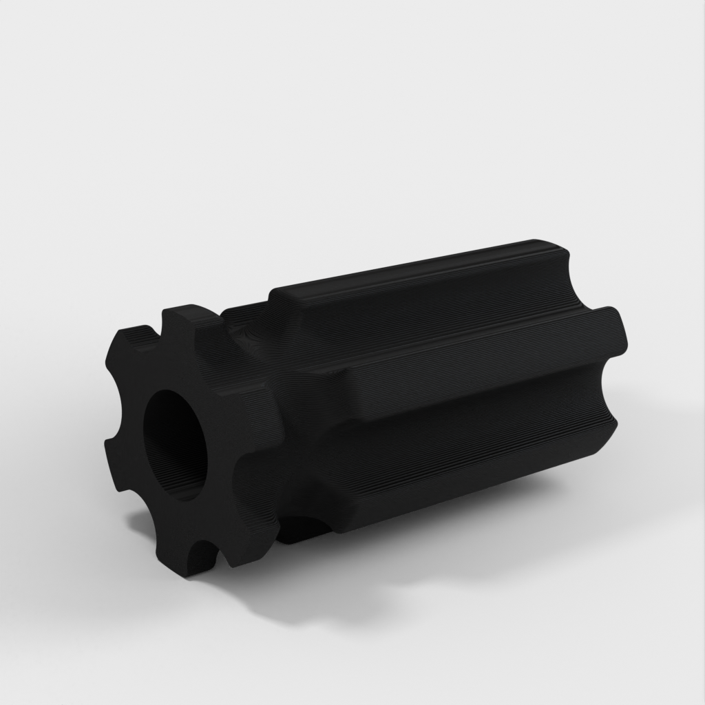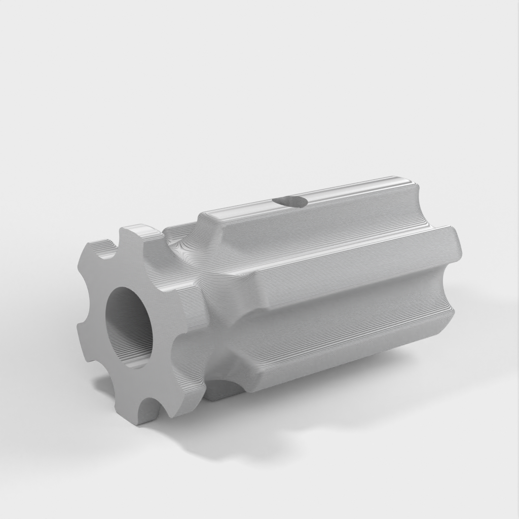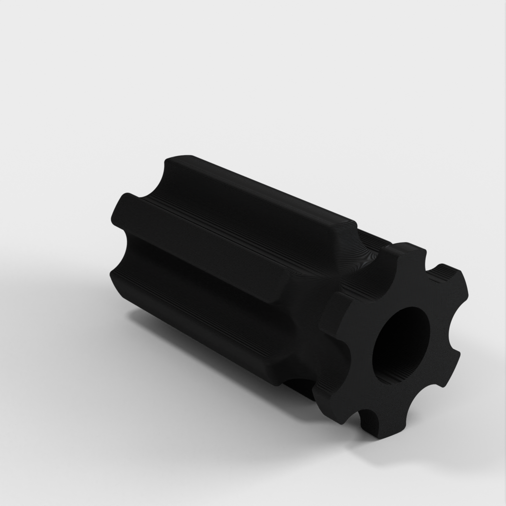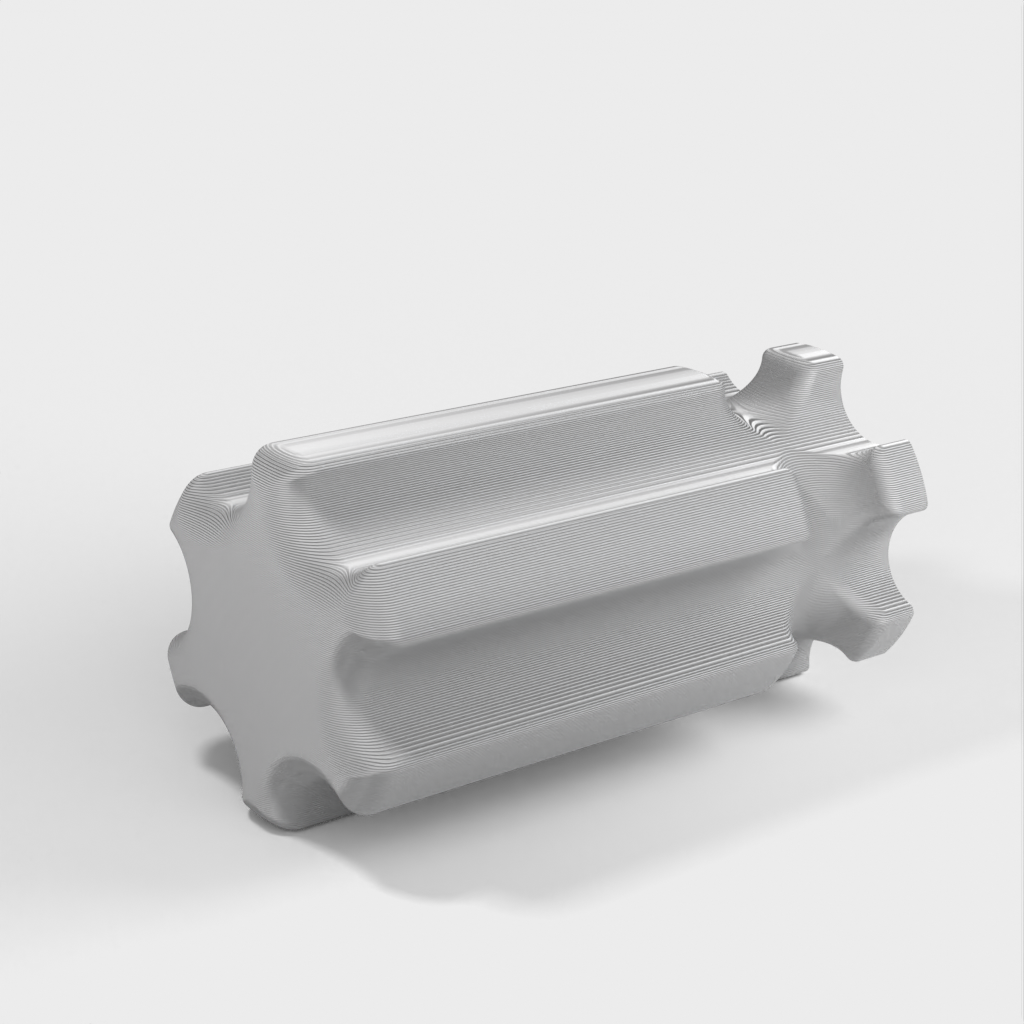 Držák na nářadí určený pro pohodlnou manipulaci s brusnými nástroji. Lze jej použít na dřevo i plast, aniž byste potřebovali vrtačku. Rukojeť je po vzoru levného dětského šroubováku pro snadnou manipulaci. Otvory jsou navrženy pro průměr 8,2 mm a jsou opatřeny prostorem pro stavěcí šroub M4 k zajištění nástroje na místě. K dispozici je také verze bez otvoru pro stavěcí šroub.