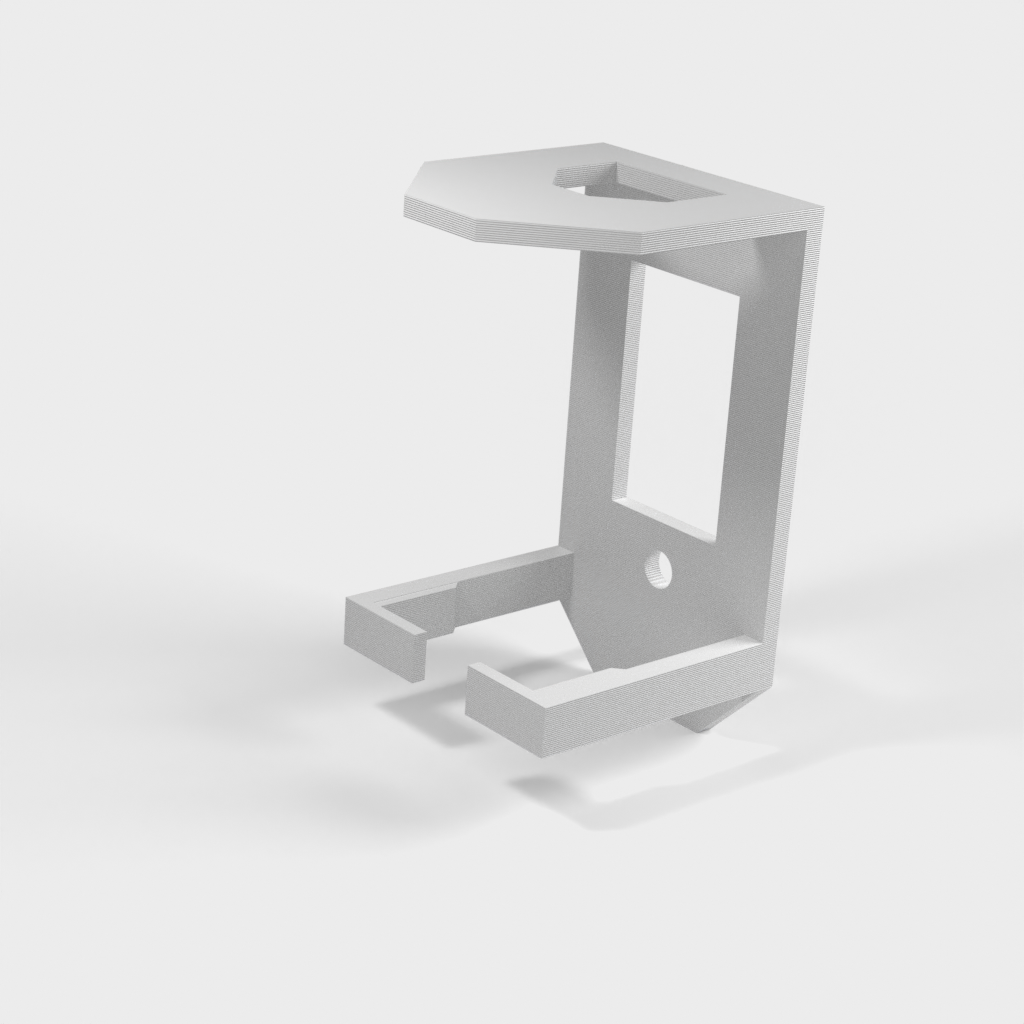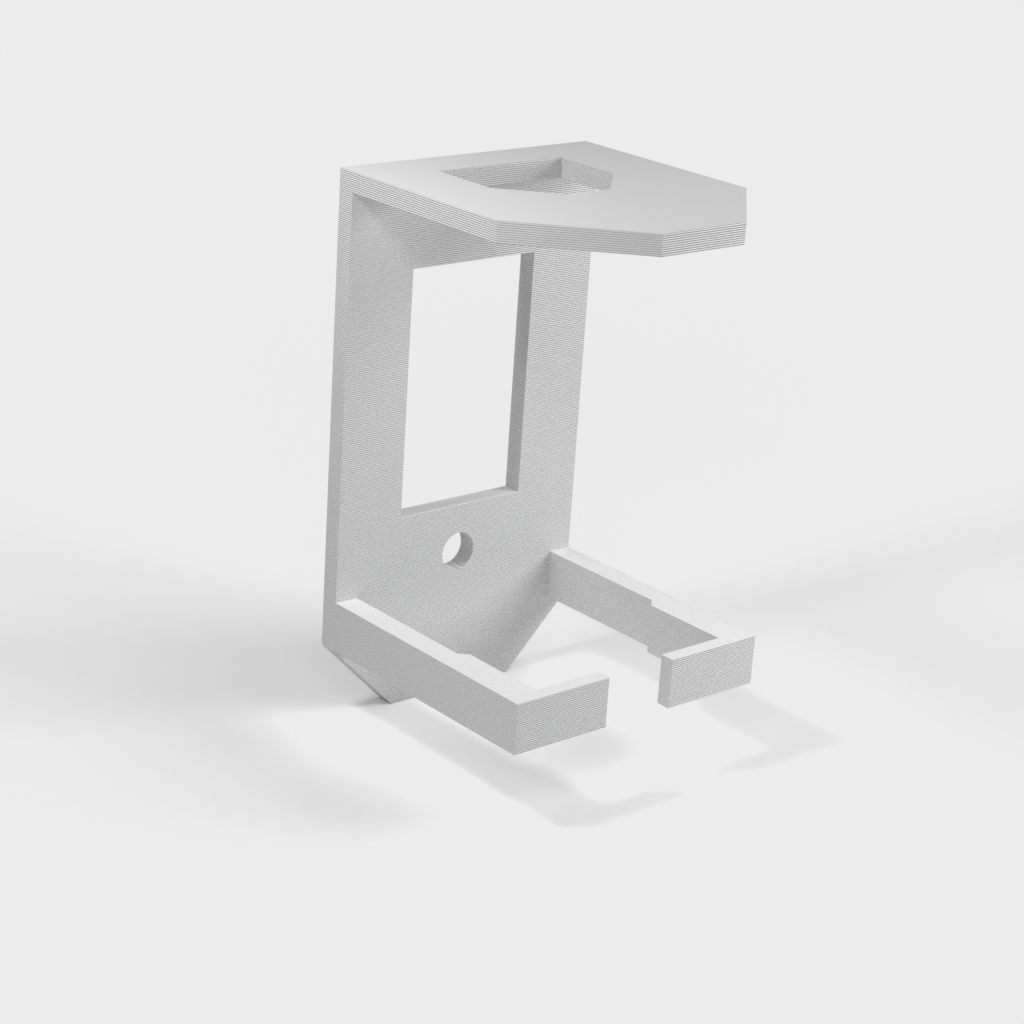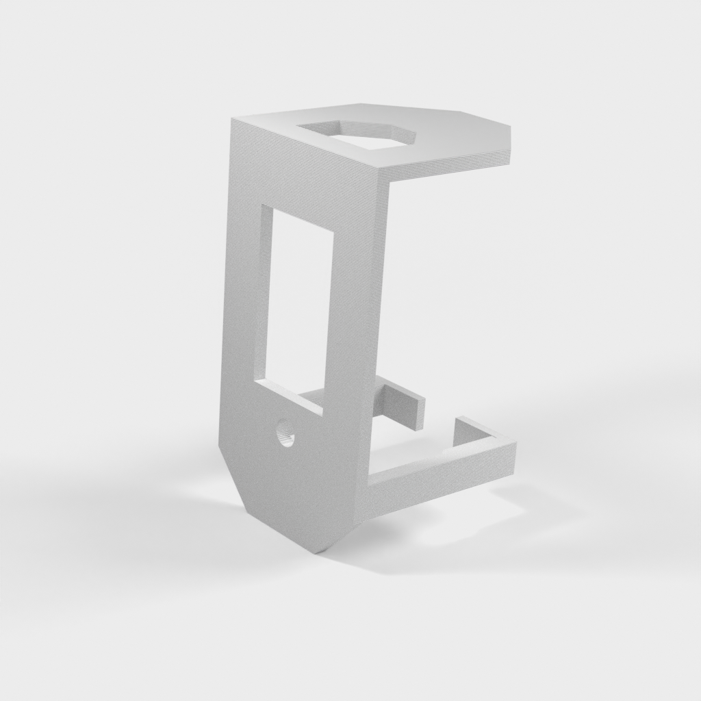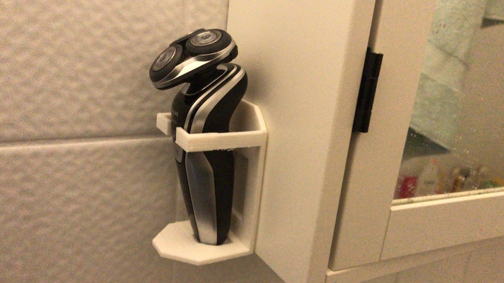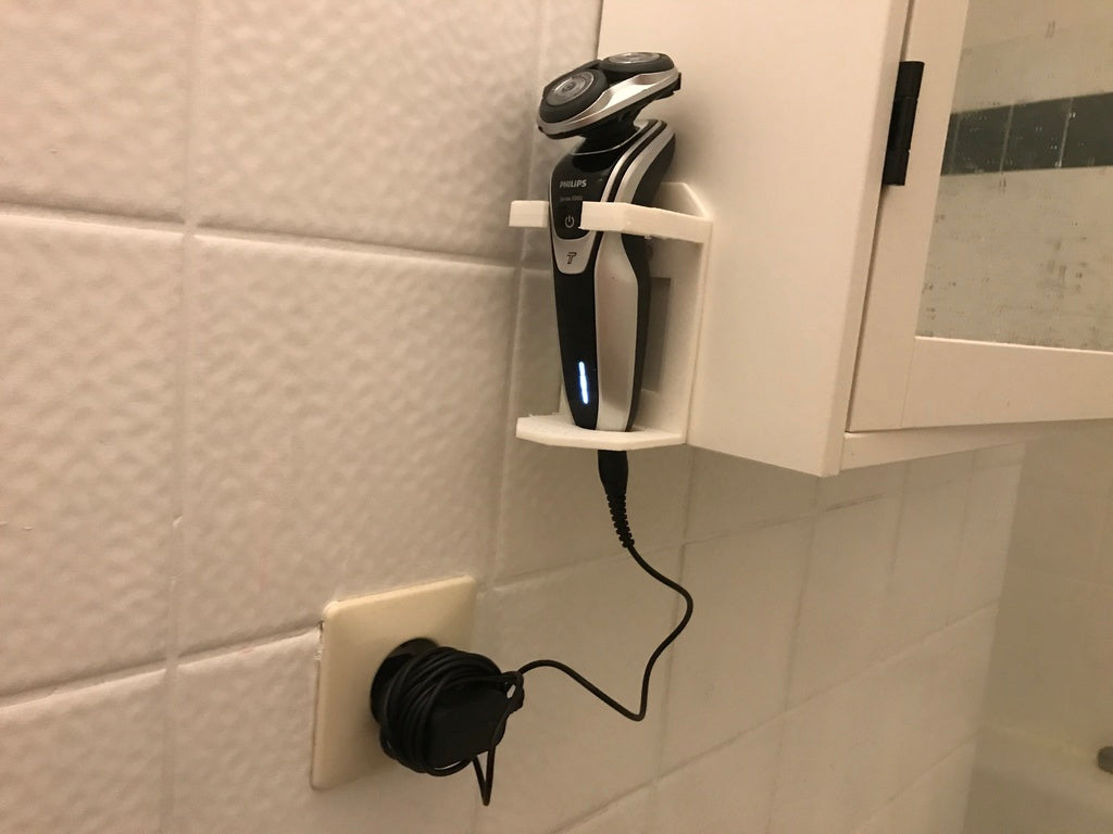 Tento malý držák pro Philips řady 5000 lze přišroubovat nebo přilepit (není součástí dodávky) na zeď. Ve spodní části je otvor pro nabíjecí kabel, který umožňuje nabíjet holicí strojek, když je v držáku.