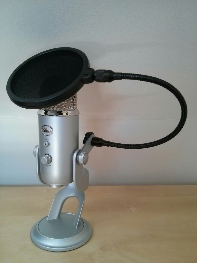 Držák pro pop filtr mikrofonu Blue Yeti usnadňuje montáž standardního pop filtru na stolní mikrofon Blue Yeti. Pop filtry jsou navrženy tak, aby se přišroubovaly ke standardnímu mikrofonnímu stojanu pomocí kovového držáku. Tento držák nahrazuje stávající a umožňuje připevnit pop filtr přímo na mikrofon Blue Yeti. Držák lze snadno připevnit přišroubováním. Úhel lze také nastavit povolením šroubu.