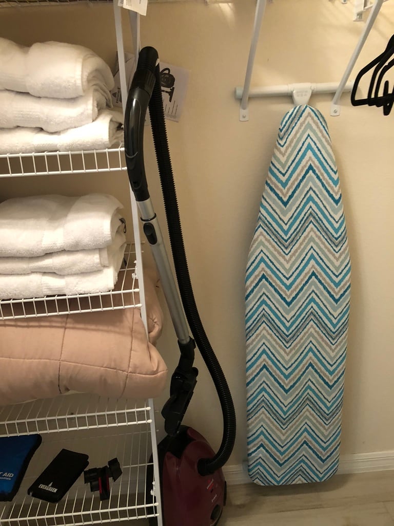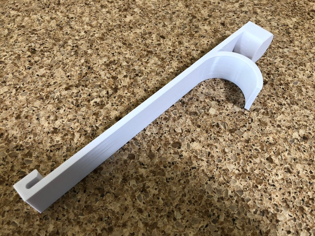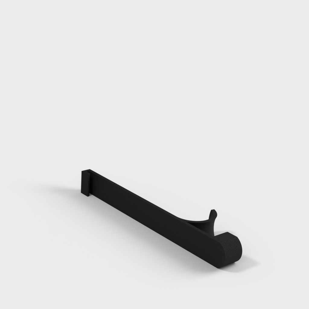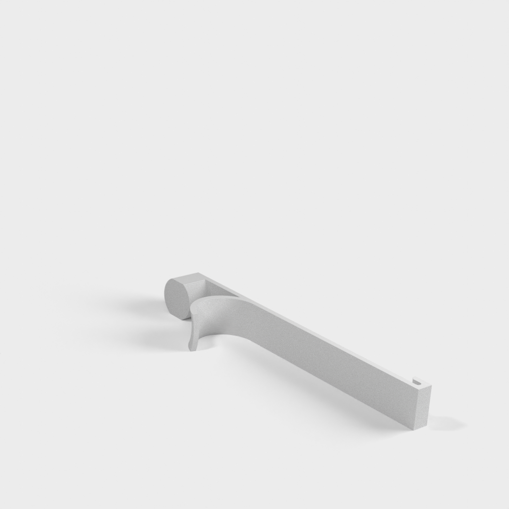 Držák na stěnu pro standardní hadici vysavače. Lze jej snadno zavěsit na drátěnou polici skříně o průměru 3 mm. Má také další úložný prostor pro příslušenství vysavače.