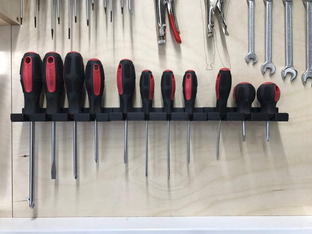 Držák na šroubovák je nejlepším řešením pro uspořádání a uspořádání šroubováků. Snadné uložení šroubováků je činí snadno dostupnými, když je potřebujete. Držák lze upravit podle potřeby pomocí přiloženého odkazu Onshape, takže je ideální pro soukromé dílny i profesionální pracoviště.