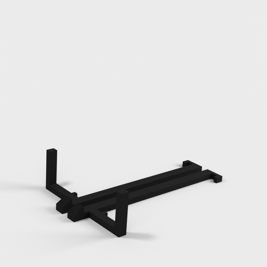 Tento držák je navržen pro diskrétní montáž středového reproduktoru pod televizor LG, model 49SK8000PLB. Toto řešení umožňuje umístit reproduktor bez nutnosti vrtání otvorů do stěn. Držák drží středový reproduktor v jedné rovině se spodní hranou televizoru, což přispívá k úhlednému vzhledu obývacího pokoje. Montáž probíhá zasunutím držáku do mřížky televizoru, kde se flexibilně přizpůsobí a zajistí. To zajišťuje stabilní umístění reproduktoru, který je elegantně integrován s televizorem.