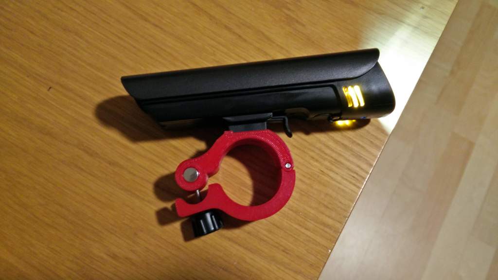 Držák světla na kolo Degbit je držák navržený k montáži světla na kolo DEGBIT (balíček předních světel 60 luxů) na řídítka o průměru ~32 mm. Tímto způsobem lze stále použít jednu z gumových vložek. Klouzavý klip a zamykací mechanismus lampy lze snadno přesunout z původní svorky na tištěnou svorku. Jediným dalším potřebným příslušenstvím je šroub M3 pro závěs.