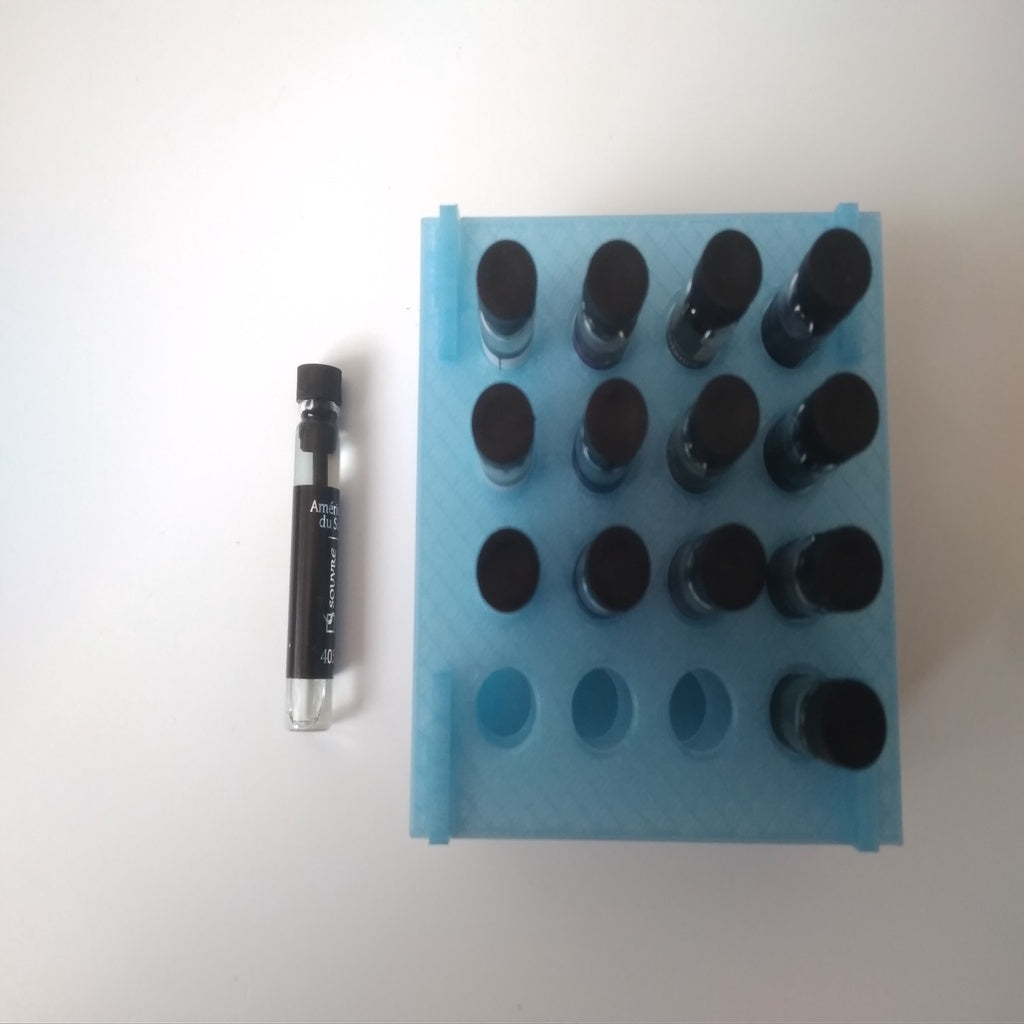 Držáky vzorků pro lahvičky parfémů pojmou až 16 vzorků a hodí se pro vzorky o průměru cca 8 mm. Tento praktický držák pomáhá udržovat vaše vzorky uspořádané a lze jej snadno umístit na polici nebo stůl.