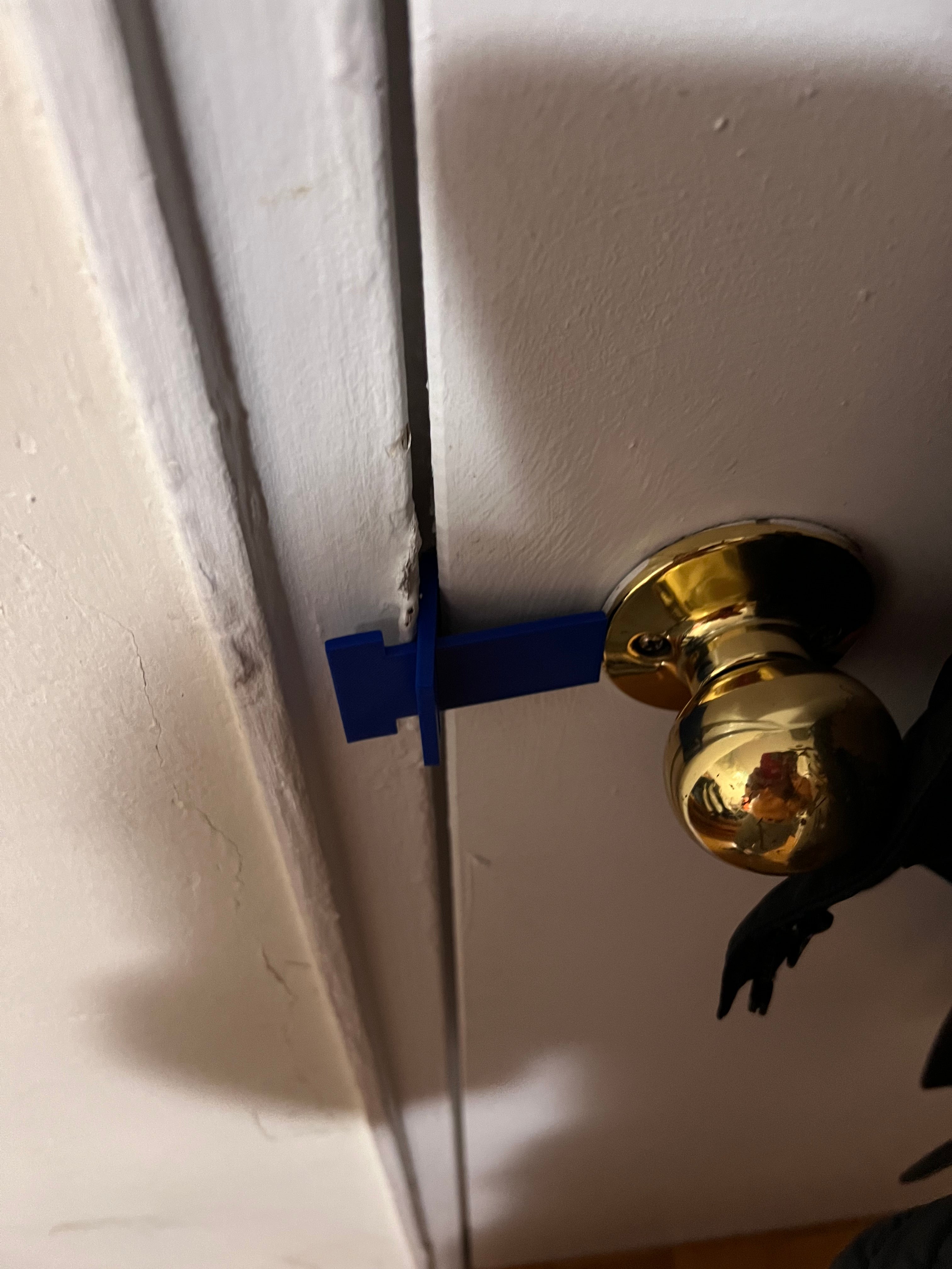 Zámek/zámek dveří vyrobený z materiálu Esun PLA. Tuto robustní zarážku/zámek na dveře lze snadno namontovat na jakékoli dveře a pomáhá je udržet na místě nebo zamknout. Hodí se na všechny standardní typy dveří, díky čemuž bude váš domov bezpečnější a funkčnější.