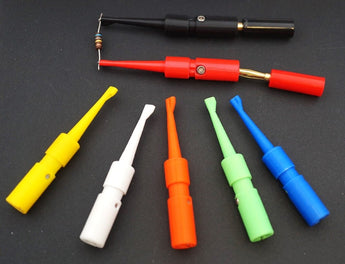 Elektrické klipsové sondy s 4 mm banánovými konektory jsou ideální pro různé měřicí úkoly s multimetry a elektronickými prototypy. Tato klipsová sonda je navržena tak, aby poskytovala spolehlivé spojení a bezpečné připojení, které usnadňuje elektrická měření pomocí pružinového mechanismu.