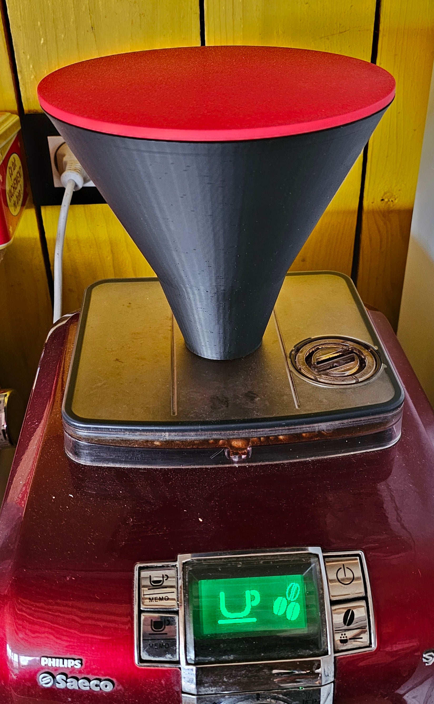 Tato násypka na kávová zrna je navržena tak, aby zlepšila uživatelskou přívětivost vašeho kávovaru Philips Saeco Syntia. Funguje jako praktické řešení pro snadné plnění kávových zrn bez rozlití. Instalací této násypky můžete efektivně přidávat svá oblíbená kávová zrna přímo do stroje, což přispívá k zachování čerstvosti a aroma kávy. Pro montáž násypky je třeba do víka kávovaru vyvrtat otvor o průměru 50 mm. Toto příslušenství je ideálním doplňkem vašeho kávovaru a přispívá k optimalizovanému zážitku z kávy pro každého kávového nadšence, který si chce zefektivnit každodenní vaření.