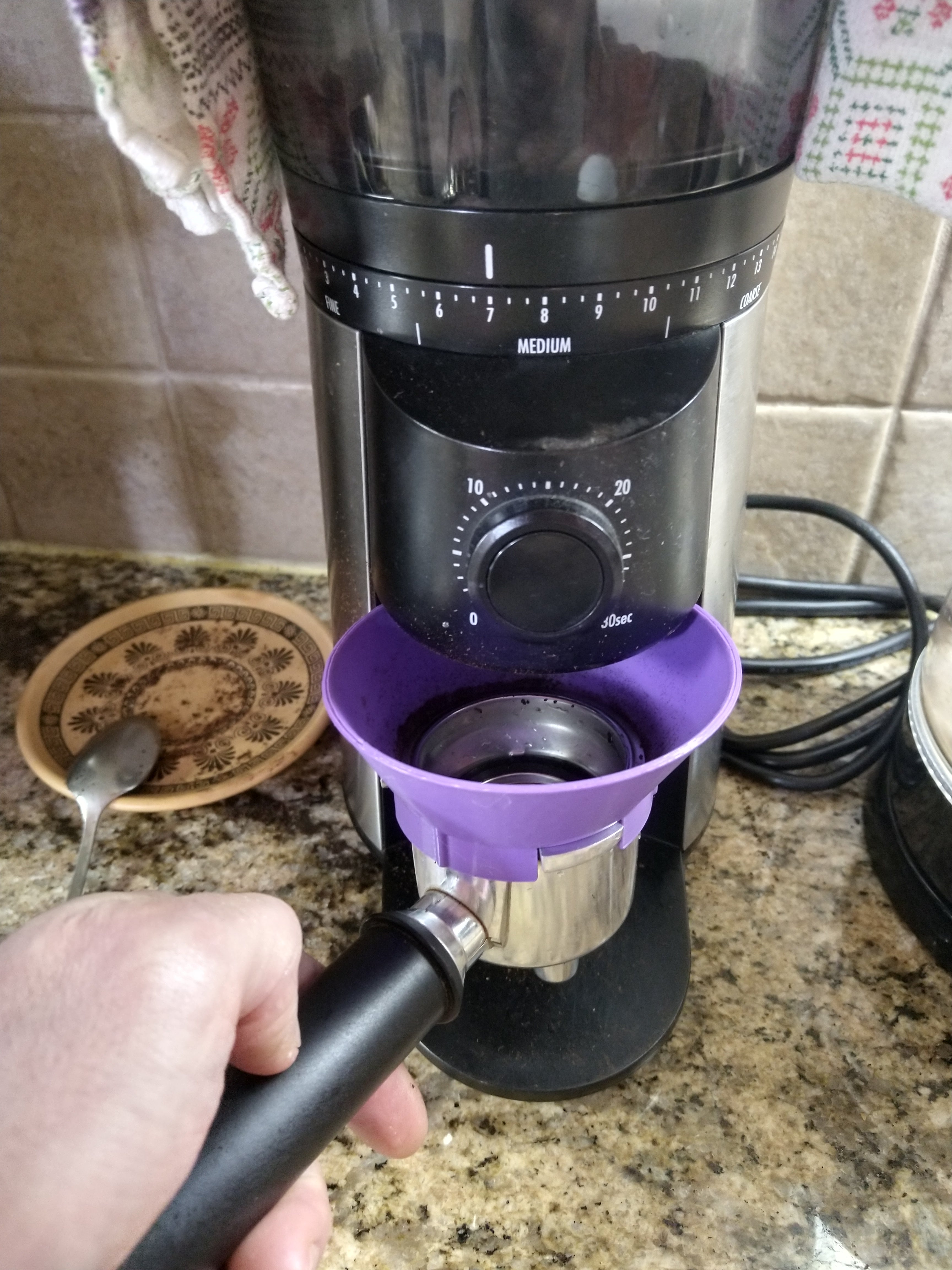 Tento trychtýř na portafilter je navržen tak, aby zlepšil proces přípravy kávy na vašem kávovaru. Hodí se pro 51mm portafiltry a zajišťuje, že kávová sedlina z mlýnku je přesně vedena do filtru bez rozlití. Funkcí trychtýře je minimalizovat nepořádek na kuchyňské lince a optimalizovat dávkování kávy.