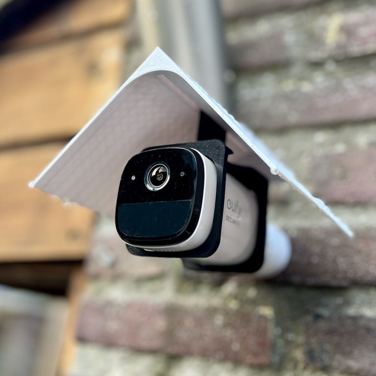 Toto je kryt proti dešti pro bezpečnostní kameru EufyCam 2 Pro. Ačkoli jsou modely EufyCam 2 Pro navrženy tak, aby byly odolné vůči povětrnostním vlivům, nevydrží přímý déšť. S tímto krytem proti dešti můžete chránit svou kameru před přímými srážkami. Ochrana proti dešti je navržena tak, aby zapadla do dvou kroužků, které se připojují k samostatné střešní části. Tření mezi kroužky a kamerou drží zařízení na místě.