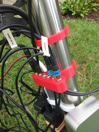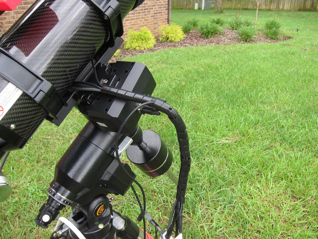 Tato konzola je navržena tak, aby poskytovala efektivní správu kabelů na stativových nohách teleskopické montáže Exos-2. Funguje jako robustní držák kabelů, který pomáhá držet kabely z ovládací skříňky PMC-Eight k montáži. Tím se minimalizuje riziko zachycení nebo zamotání kabelů při otáčení teleskopu, což může zabránit zablokování motorů a potenciálně poškodit zařízení. Kromě primárních ovládacích kabelů lze tuto kabelovou sponu použít také k bezpečnému držení topných drátů a kabelů astrofotografické kamery na místě, což přispívá k organizovanější a bezproblémovější relaci pozorování.