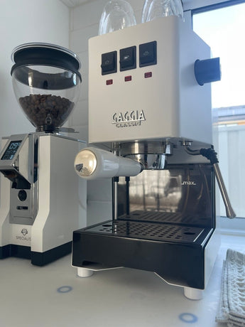 Vylepšete svůj Gaggia Classic Pro pomocí těchto praktických nožiček, které zvednou vaši parní trysku a zlepší váš proces vaření kávy. Pomáhají také chránit vaše povrchy tím, že zabraňují gumovým nožičkám zanechávat stopy na vaší bílé kuchyňské desce. Naše nožičky jsou navrženy tak, aby dokonale seděly na GCP, a jsou vyrobeny z odolného PLA. Tato funkčnost zajišťuje, že váš stroj stojí stabilně a v uživatelsky přívětivé poloze.