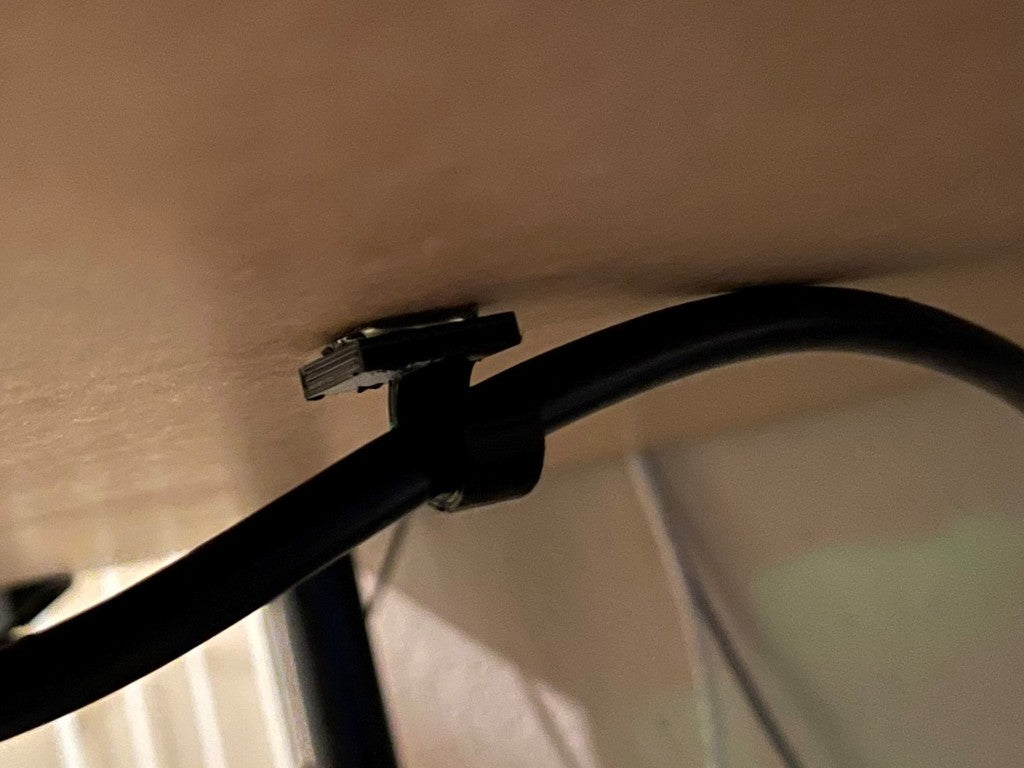 Tento praktický kabelový hák je navržen tak, aby vytvořil pořádek a efektivní správu kabelů pod vaším stolem. Pomáhá udržet různé kabely, včetně silnějších vodičů např. od napájecích lišt, bezpečně na svém místě a diskrétně skryté. Použitím tohoto držáku kabelů můžete snadno proměnit neuspořádaný pracovní prostor v organizované a funkční místo bez zamotaných vodičů.