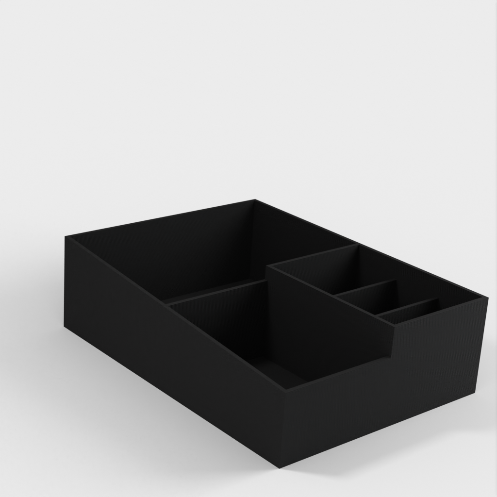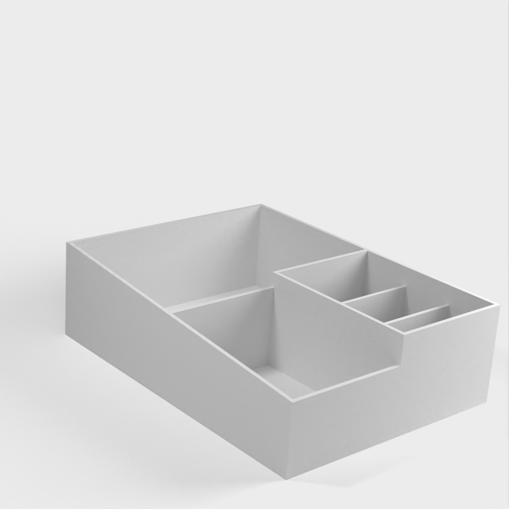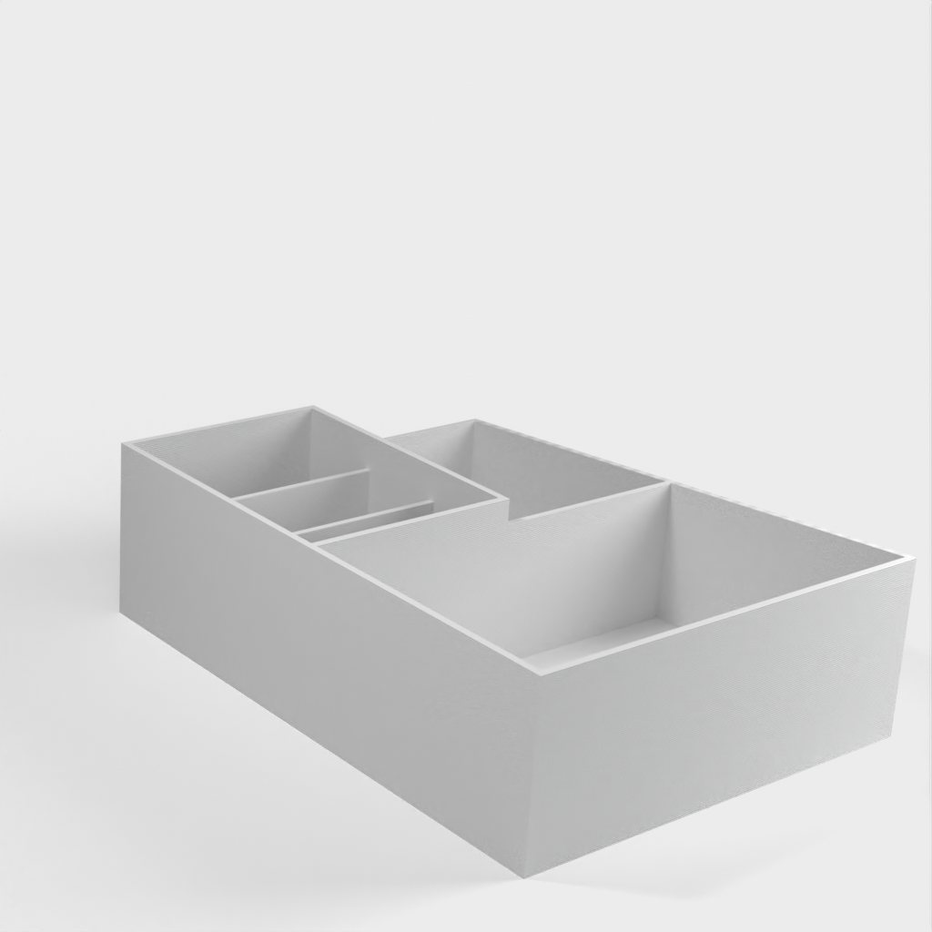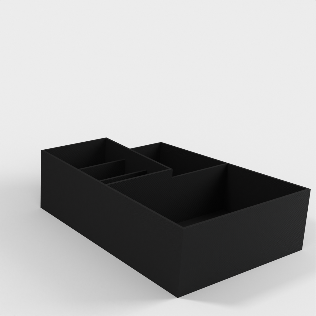 Každý je vyroben tak, aby se vešel do 1/4 plochy nočního stolku Ikea 'MALM', takže si můžete každý vytisknout 1, 2, 3 nebo 4. šuplík na postel. Osobně jsem vytiskl pouze jeden vlevo a vpravo, aby seděl v přední části zásuvky, a jeden vzadu, ale můžete je orientovat, jak chcete.