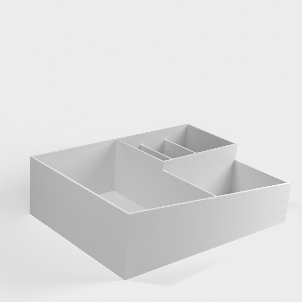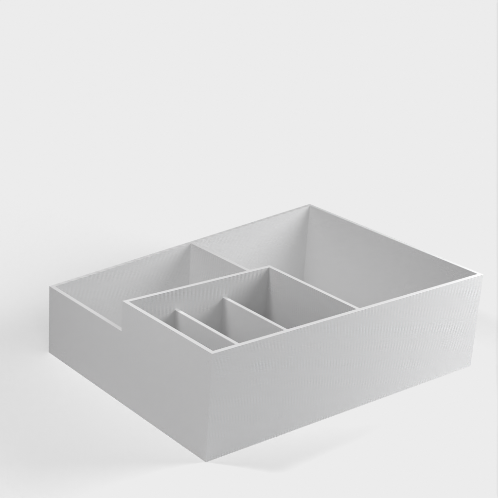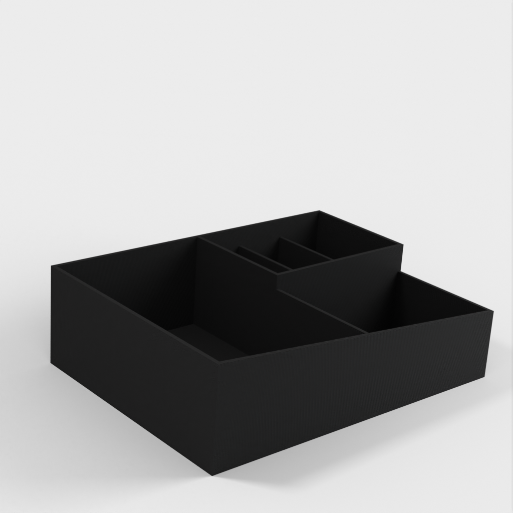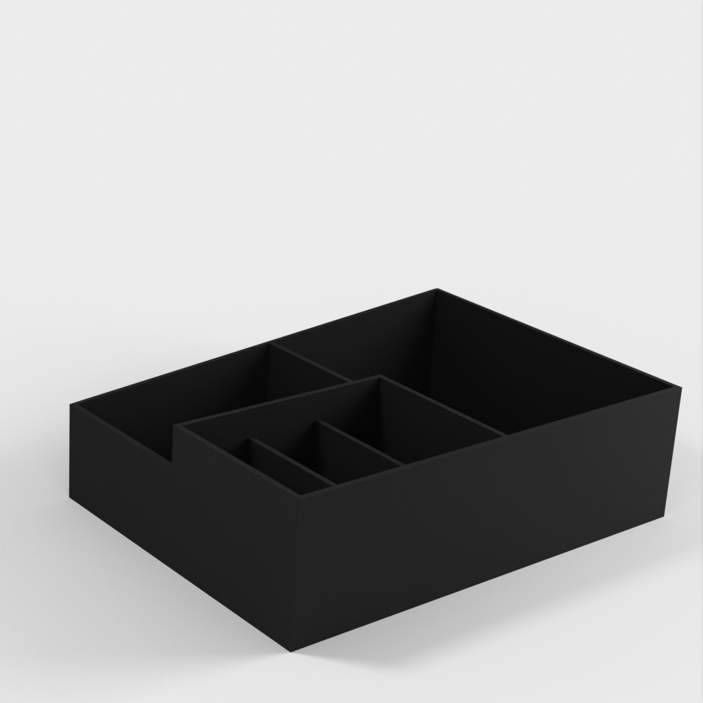 Každý je vyroben tak, aby se vešel do 1/4 plochy nočního stolku Ikea 'MALM', takže si můžete každý vytisknout 1, 2, 3 nebo 4. šuplík na postel. Osobně jsem vytiskl pouze jeden vlevo a vpravo, aby seděl v přední části zásuvky, a jeden vzadu, ale můžete je orientovat, jak chcete.