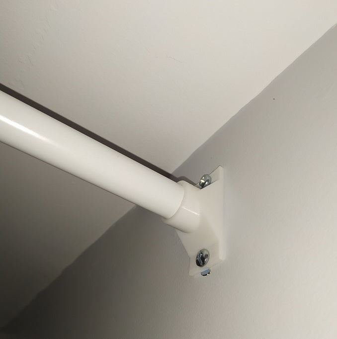 Držák je určen pro záclonové tyče Ikea RÄCKA. To znamená, že můžete nastavit záclonovou tyč bez potřeby šroubů. Jednoduše vložte tyč do držáku a je pevně na svém místě.