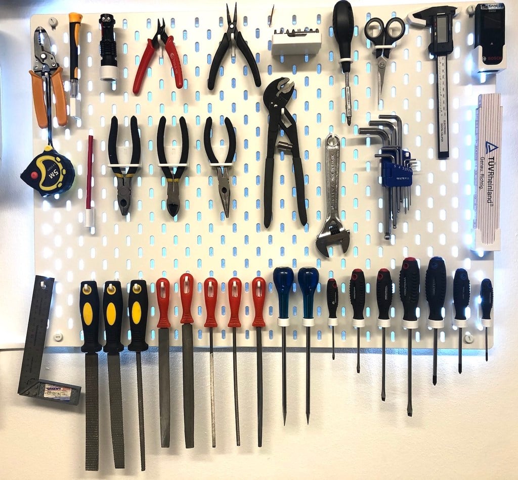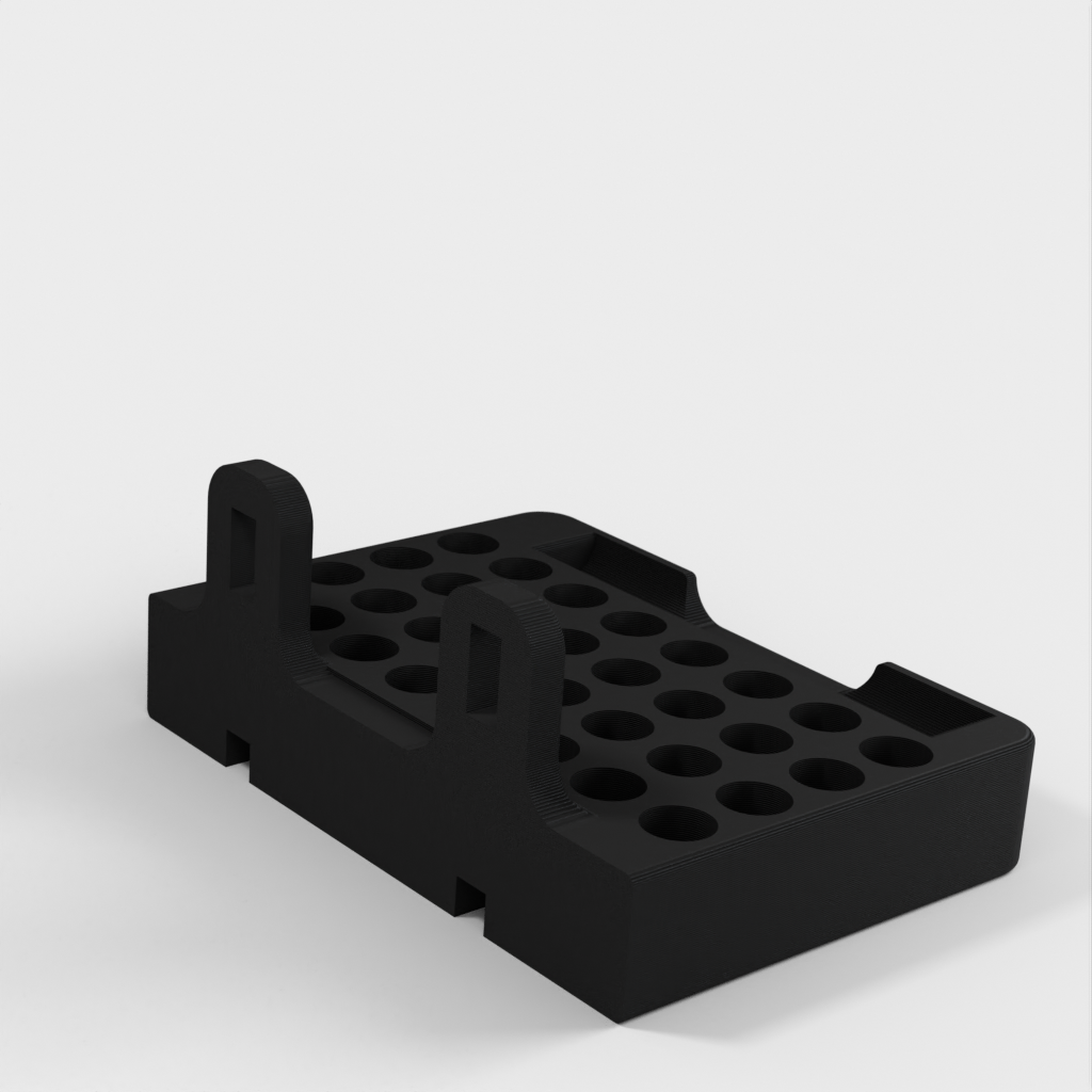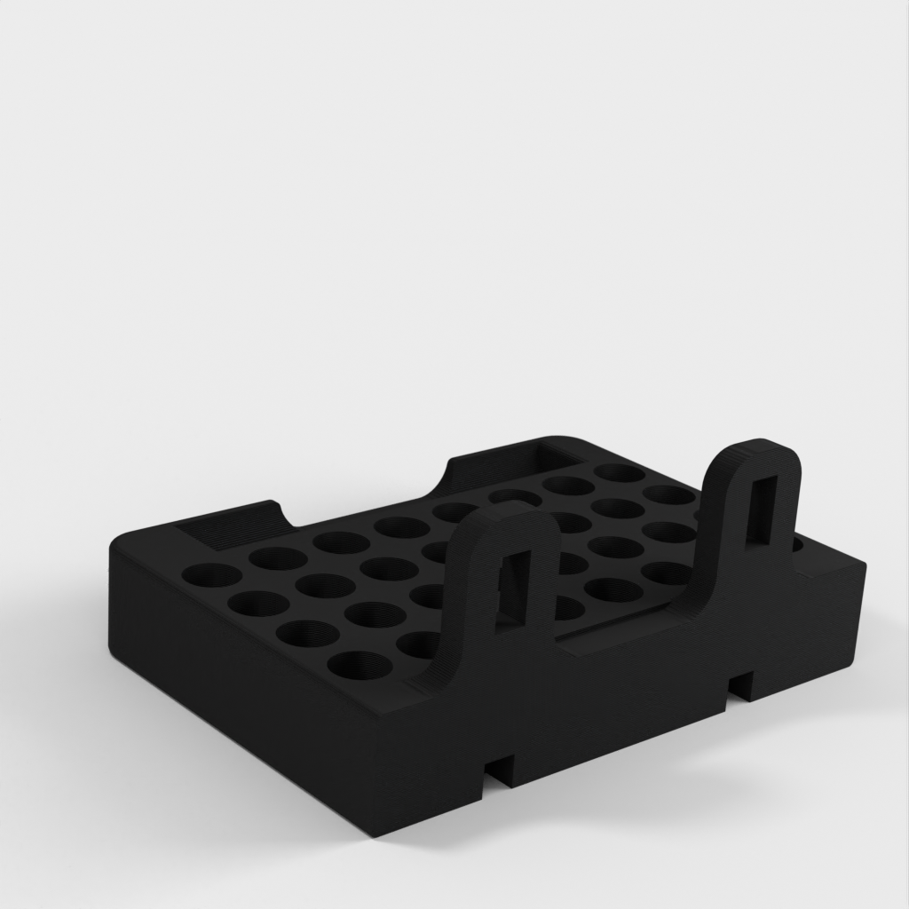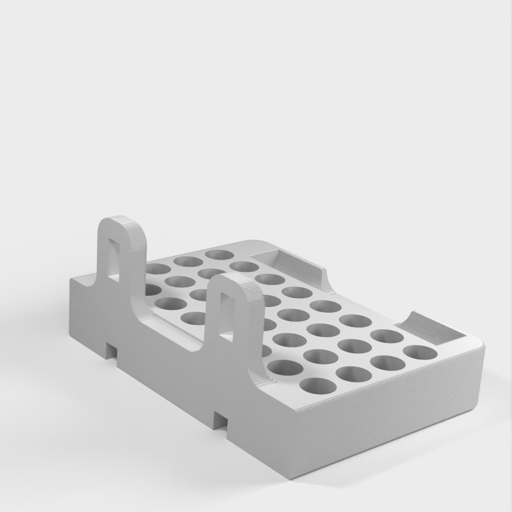 Toto je moje kolekce háčků Ikea Skådis, inspirovaná kolekcí CSD Salzburg. Jsou zde obsaženy držáky na různé nástroje, jako jsou vrtáky, skládací metry, šestihranné klíče, kleště, šroubováky, Bosch Zamo, tužka a skalpel. Součástí je také univerzální háček pro všechny držáky a háčky tří různých délek. Držáky jsou kompatibilní s univerzálními háky CSD Salzburg.