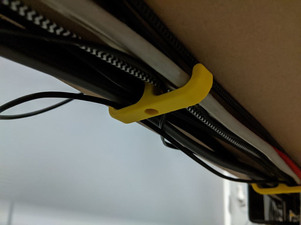 Tento jednoduchý držák kabelů byl vyvinut k efektivnímu uspořádání kabelů pod psacím stolem. Poskytuje diskrétní a praktický způsob, jak udržet kabely pohromadě, což pomáhá snižovat nepořádek a přispívá k uspořádanějšímu pracovnímu prostoru. Udržením kabelů pod deskou stolu zajišťuje úhledný vzhled.