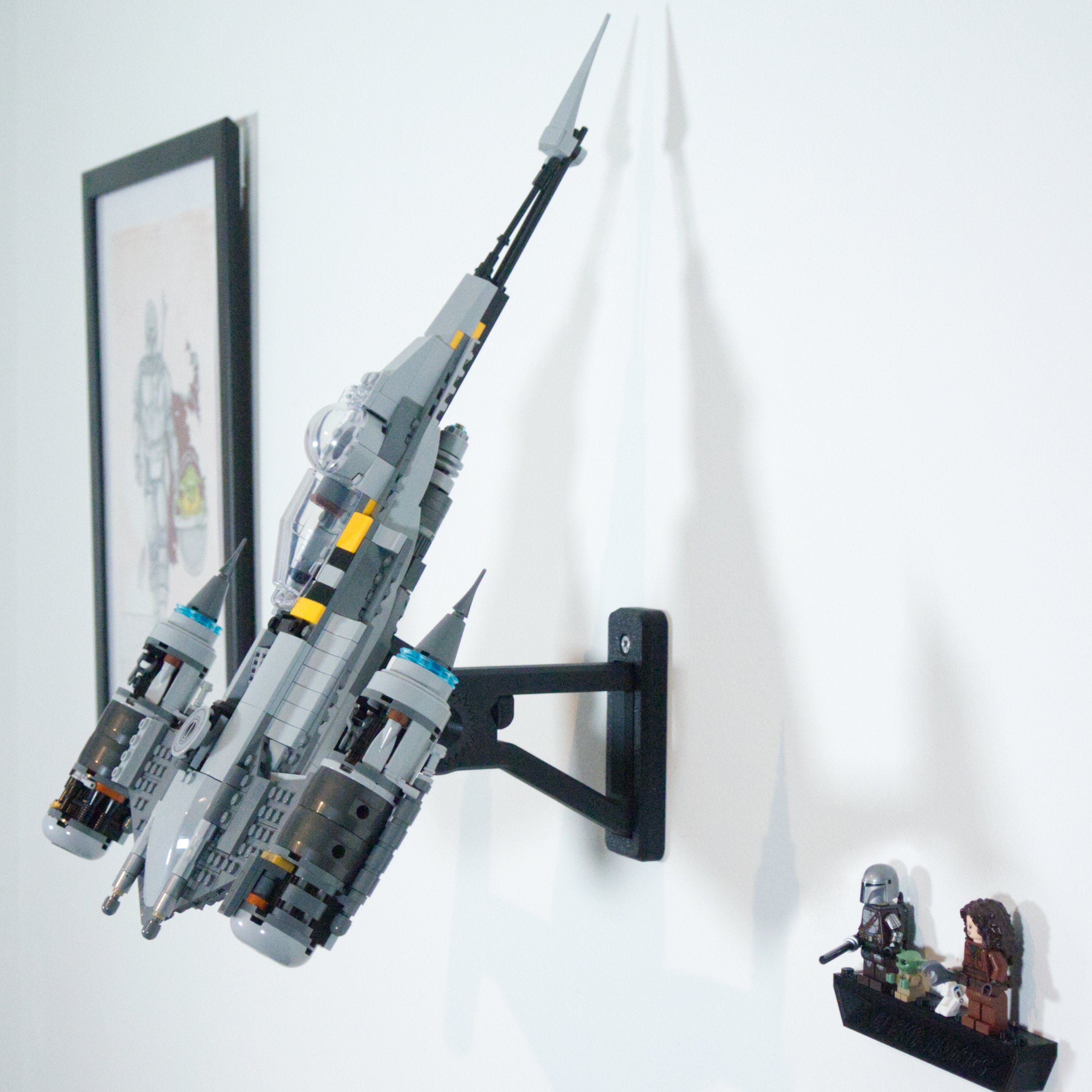 Dette justerbare vægbeslag er designet specifikt til LEGO sæt 75325 og gør det muligt at udstille din N-1 Starfighter i forskellige vinkler. Beslaget sikrer nem adgang til modellen og inkluderer en separat holder til minifigurer, så hele sættet kan præsenteres samlet på væggen.