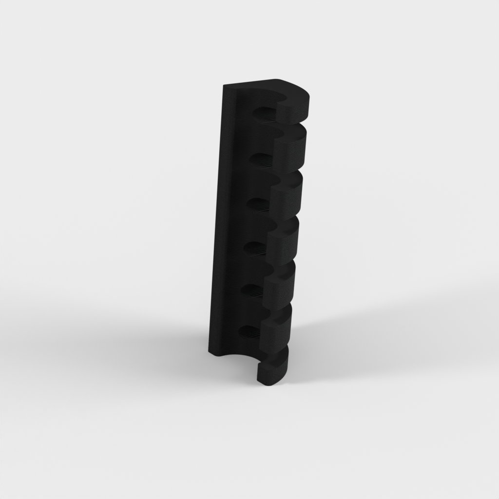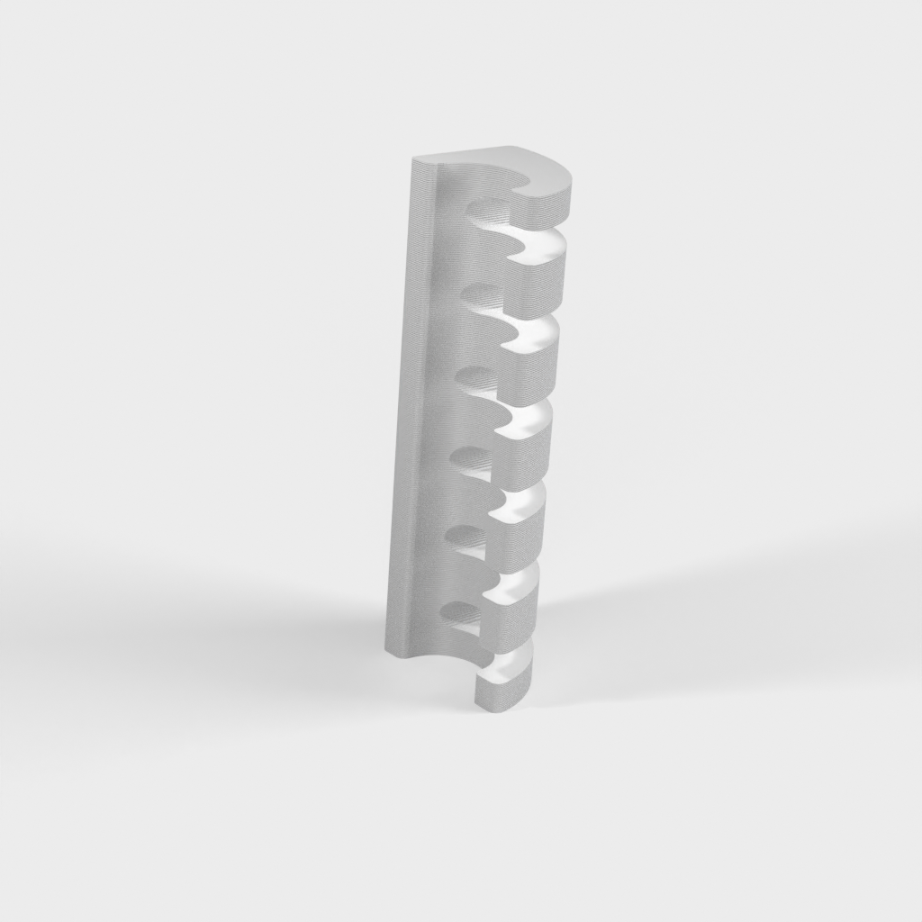 Jedná se o držák kabelu na okraji stolu, který zabraňuje sklouznutí napájecích kabelů na okraji postele do mezery mezi postelí a nočním stolkem. Je navržen tak, aby snadno držel více kabelů najednou a lze jej upravit, aby lépe vyhovoval vašim individuálním potřebám. Toto praktické příslušenství zajišťuje uspořádaný a úhledný vzhled vaší ložnice nebo kanceláře a zároveň zabraňuje tahání a poškození kabelů.