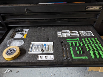 Tento soubor byl původně vyvinut tak, aby se vešel do boxu na nářadí Husky 60" a byl optimalizován pro použití s Carbide 3D Shapeoko 5 Pro, a nabízí flexibilitu, takže si můžete přizpůsobit velikost a rozvržení vašim specifickým potřebám a stávajícím úložným řešením. Hotová pěnová vložka pomáhá chránit vaše nářadí před poškozením, snižuje nepořádek a usnadňuje a urychluje nalezení správného vybavení při práci. Přispívá k organizovanějšímu a efektivnějšímu pracovnímu prostoru.
