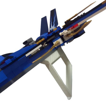 Úhelníkový nástěnný držák letadla Lego určený k vystavení dětského letadla Lego na stěně bez nutnosti montáže poličky nebo vrtání otvorů do zdi. Tento stojan je navržen tak, aby se k sobě hodil s lepicími plakátovými pásky 3M.