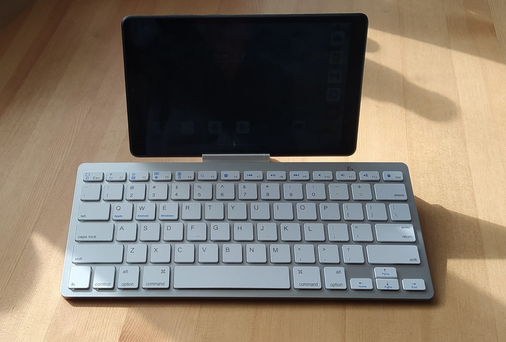 Držák klávesnice tabletu pro tablet Lenovo M8 a levnou klávesnici BK 3001 BT. Tento držák zajišťuje pohodlné a praktické psaní tím, že drží tablet i klávesnici na jednom místě. Ideální pro práci, studium nebo zábavu.