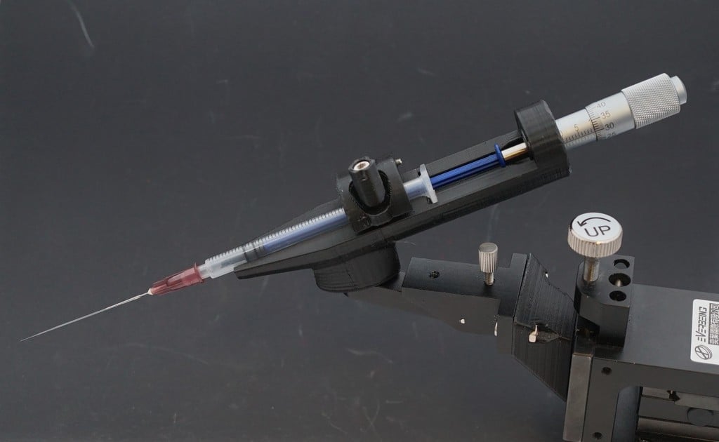 Adaptér pipet micromanipulátoru je speciálně navržen pro přesné zacházení s velmi malými objemy tekutin pomocí micromanipulátoru. Tento adaptér se připojuje k injekční stříkačce o objemu 1 ml s velmi tenkou jehlou, což zajišťuje přesnost při aplikaci tekutiny. Je ideální pro použití například UV lepidla v binokulární konfiguraci, kde je přesnost zásadní.