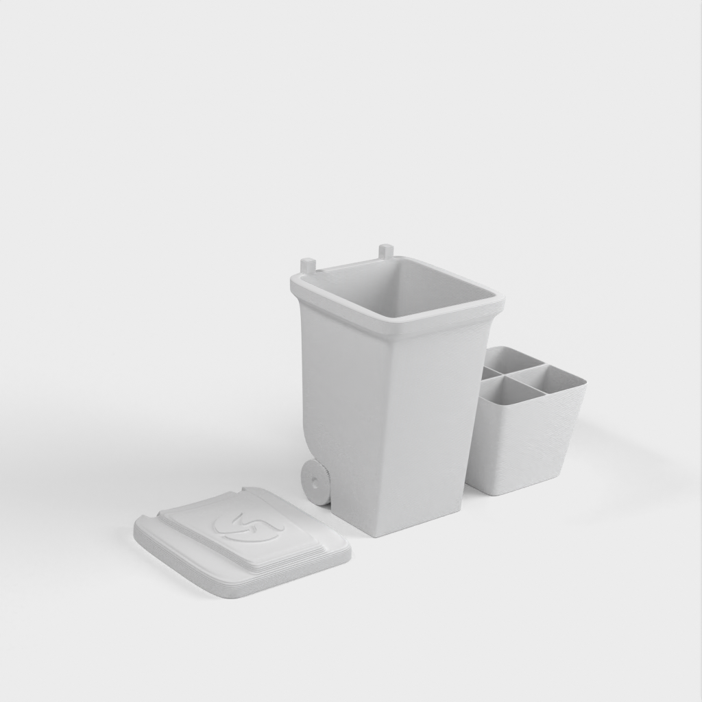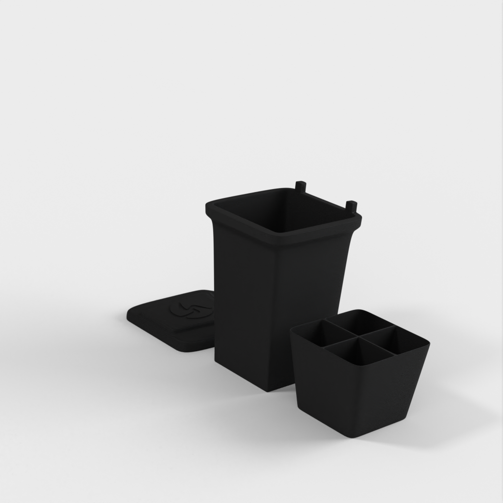 Miniaturní zásobník na drobné předměty, jako jsou matice a šrouby. Vytiskněte díly zvlášť pro různé materiály nebo všechny najednou. Víko se zaklapne a vložka je vyjímatelná. Navrženo pro uvedení našeho nového materiálu Landfillament, který je vyroben z odpadků! Více informací se dozvíte zde: https://www.youtube.com/watch?v=TSWXhDounRY