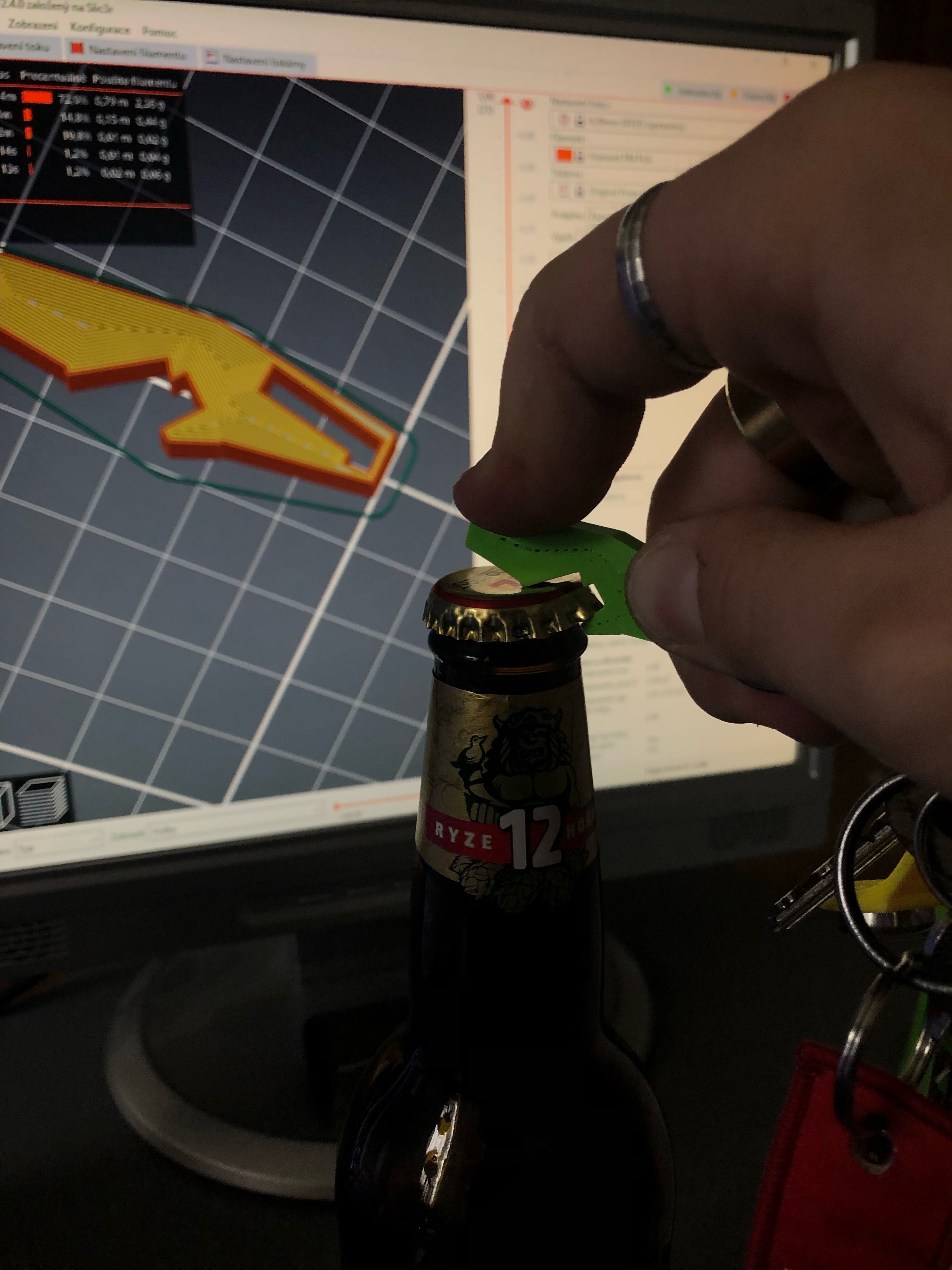 Tento mini otvírák je navržen tak, aby byl praktický a kompaktní. Je dostatečně malý na to, aby se vešel na přívěsek na klíče, takže budete mít otvírák vždy po ruce. Tento mini otvírák je vhodný pro běžné i menší uzávěry lahví. Pokud potřebujete větší otvírák na lahve, najdete ho zde: https://www.prusaprinters.org/prints/136800-bottle-opener.