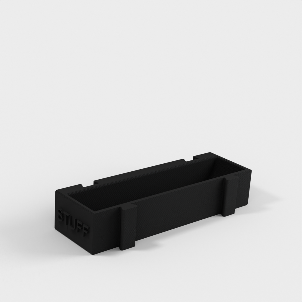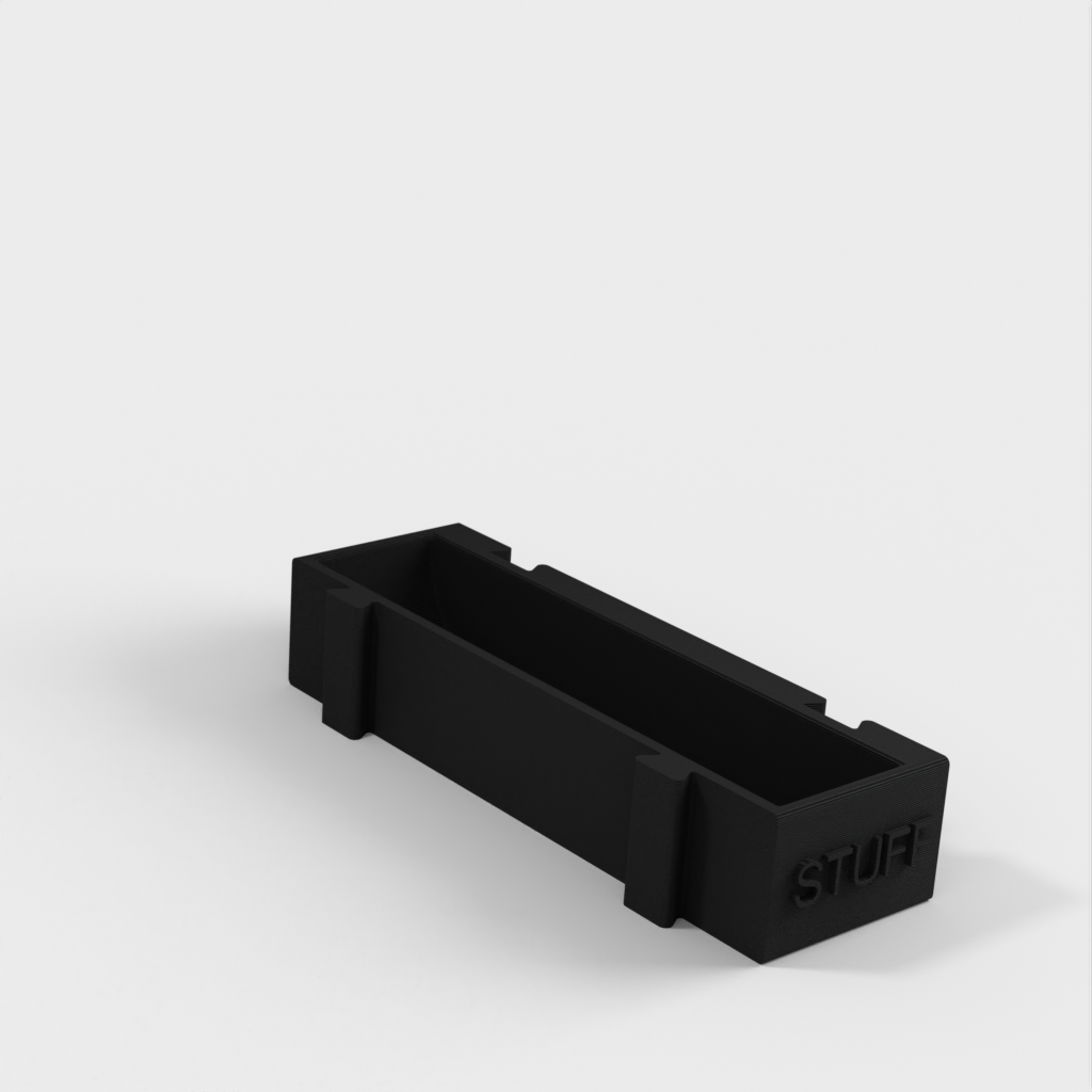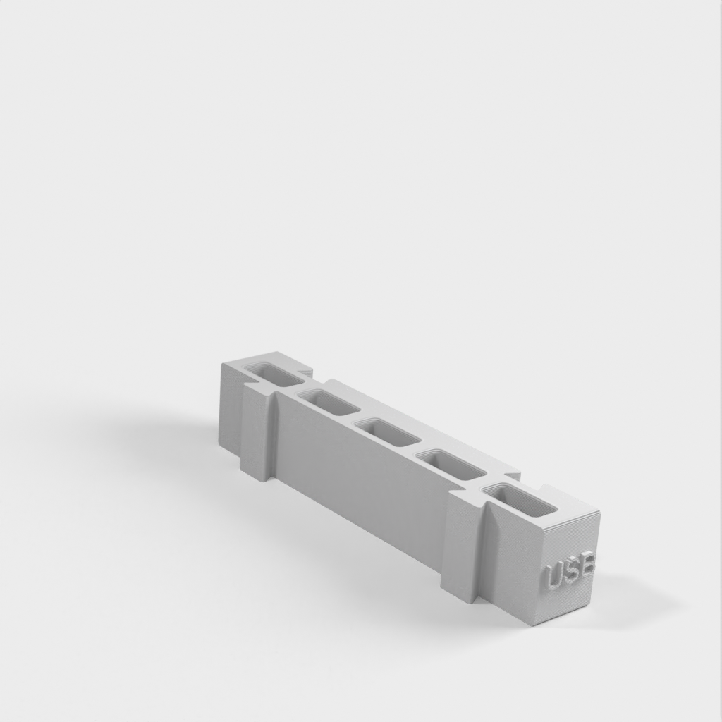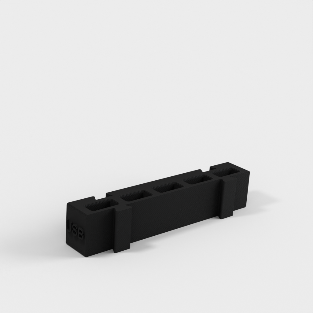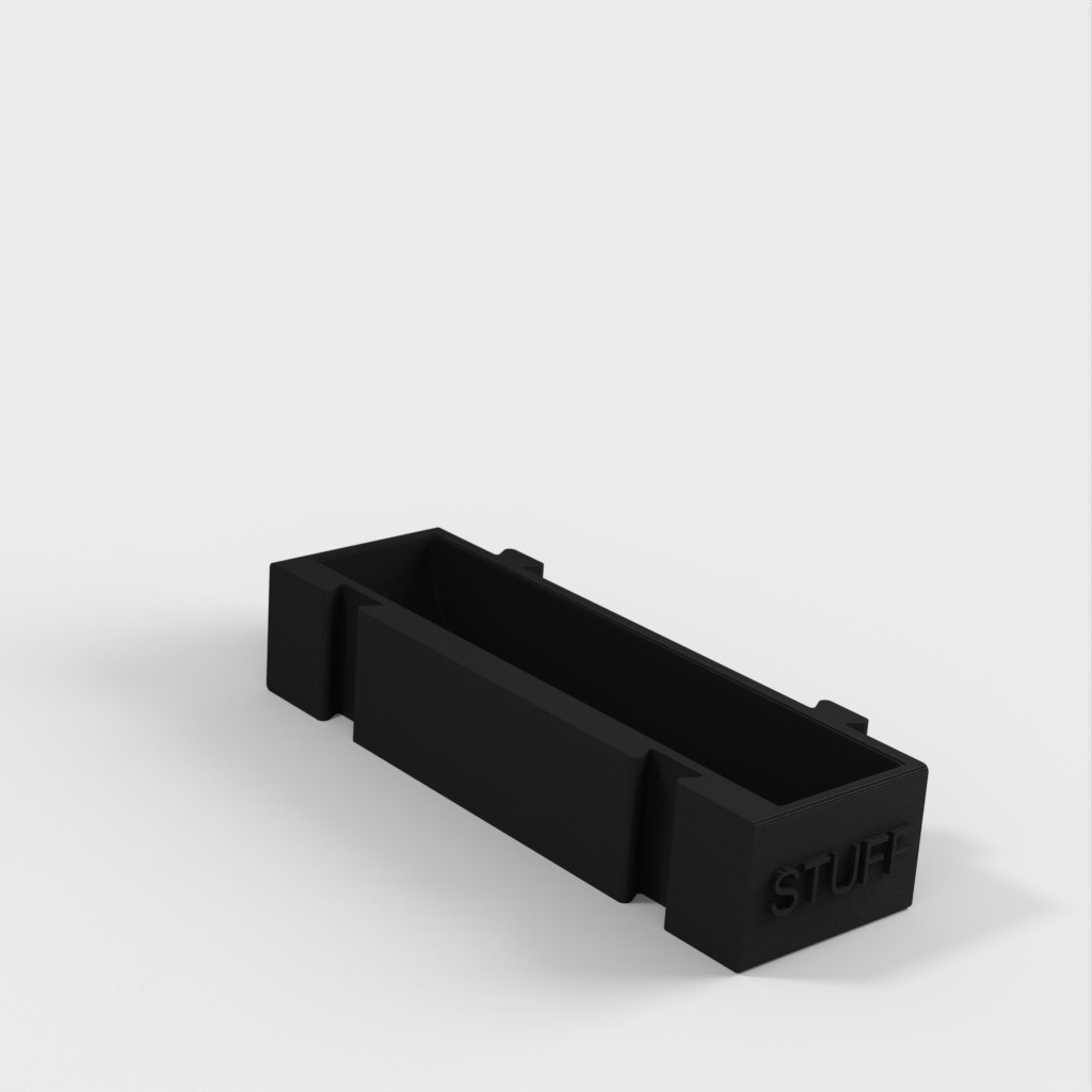 Jedná se o modulární držák baterií, který nabízí různé držáky pro jednotlivé typy baterií. Všechny držáky mají stejnou délku a lze je k sobě připnout v libovolné kombinaci. Je to ideální řešení, jak si uspořádat stůl a mít přehled o bateriích. Přidáním držáku na baterie AA a držáku na mince do sbírky se jeho funkčnost ještě zvýší.