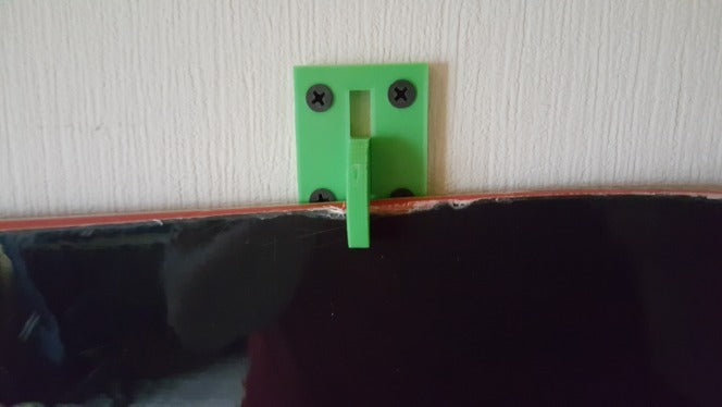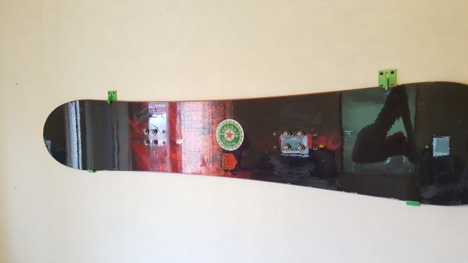 Toto jsou díly pro připevnění snowboardu na zeď. Horní díly jsou pohyblivé, takže se dají otevřít. Snowboard lze snadno umístit do držáků, díky čemuž bude vaše stěna nebo dílna uklizenější.