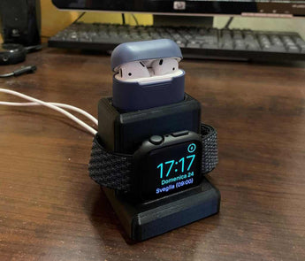 Tato nabíjecí dokovací stanice je navržena tak, aby zefektivnila nabíjení vašich Apple Watch SE/6 a AirPods 1/2. Vytváří vyhrazený a uspořádaný prostor na vašem stole nebo nočním stolku, kde lze nabíjet obě zařízení současně.