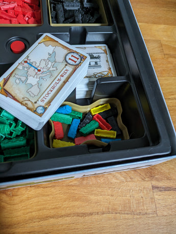 Použitím tohoto organizačního řešení se optimálně využije prostor v herní krabici a vaše herní komponenty budou úhledně pohromadě a uspořádané. Je to funkční krabice, která přispívá k udržení pořádku ve vaší hře Ticket To Ride a připravené k použití, abyste se mohli plně soustředit na síť tras a strategii.