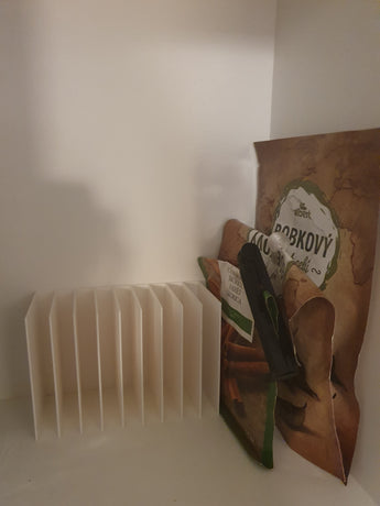 Tento organizér je navržen tak, aby efektivně udržoval vaše sáčky s kořením pohromadě a snadno dostupné v kuchyni. S rozměry 157x50x74 mm se snadno vejde do většiny zásuvek nebo skříněk a pomáhá vytvářet přehled o vašem koření. Vzdálenost 11 mm mezi přihrádkami zajišťuje, že každý sáček má své vlastní místo, což zjednodušuje výběr při vaření a snižuje nepořádek. Organizér lze navíc snadno připevnit oboustrannou lepicí páskou pro zvýšení stability, pokud je to žádoucí, což přispívá k organizovanějšímu a funkčnějšímu kuchyňskému prostoru.