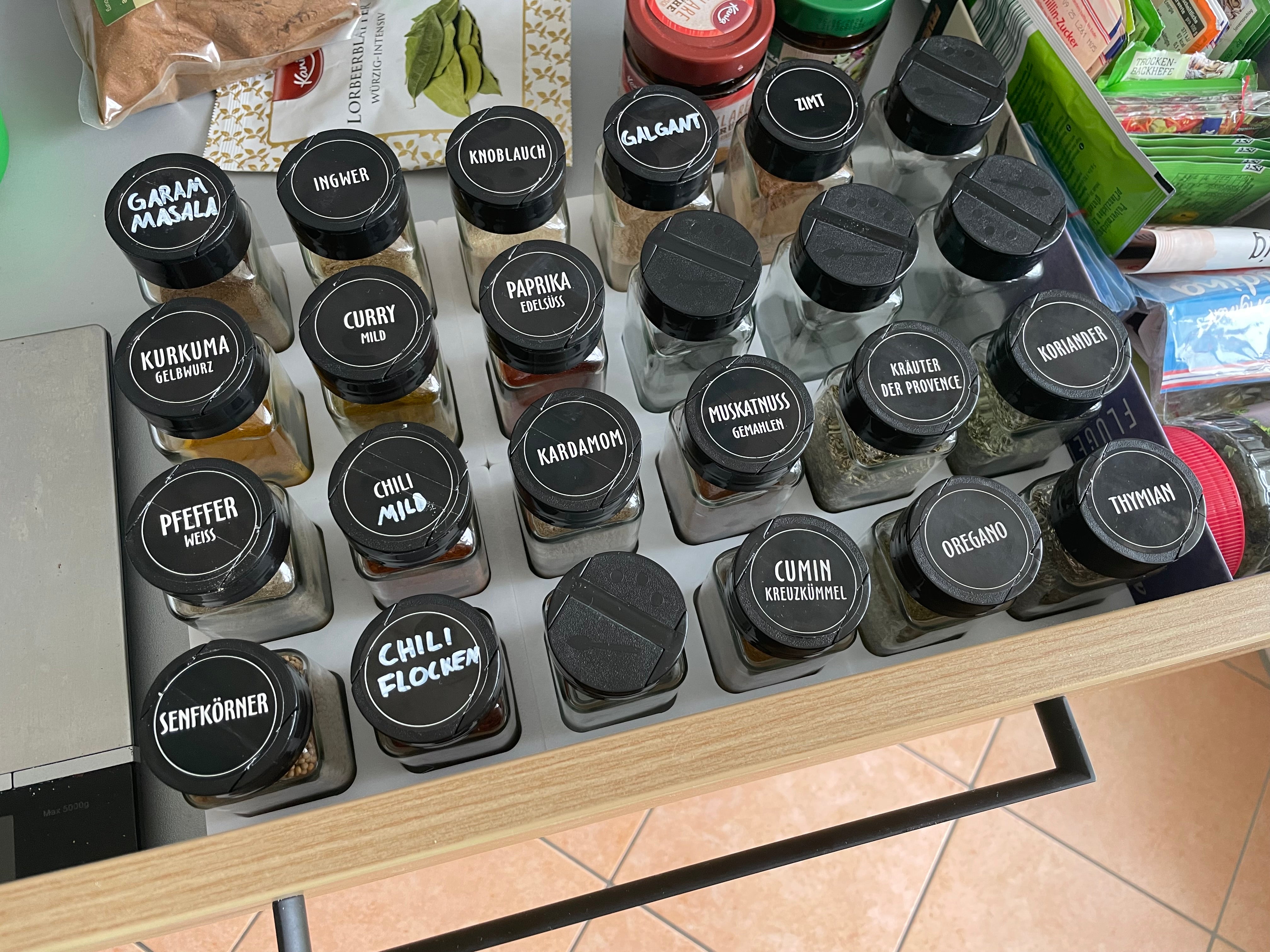 Uložte své koření s tímto praktickým organizérem na sklenice s kořením určeným pro zásuvky. Nabízí efektivní způsob, jak udržet vaše koření na svém místě a snadno přístupné. Tato varianta je ideální pro obdélníkové sklenice s kořením, ale lze ji také přizpůsobit pro kulaté sklenice, což ji činí flexibilní pro různé potřeby skladování.