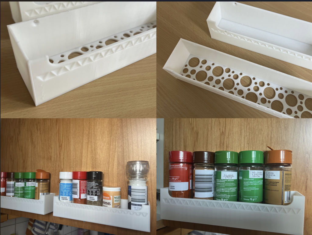 Tento organizér na kořenky je navržen tak, aby optimalizoval skladování vašich koření v kuchyni. Lze jej snadno namontovat na vnitřní stranu kuchyňských dveří, čímž se uvolní cenné místo na policích a ve skříních. Organizér nabízí dvě různé možnosti dna: jednu s otvory, které umožňují cirkulaci vzduchu pro určitá koření, a pevnou základnu pro obecnější skladování koření. To vám dává flexibilitu při uspořádání vašeho výběru koření přehledným způsobem, takže jsou snadno dostupné při vaření. Praktické řešení, které přispívá k organizovanějšímu kuchyňskému prostředí a efektivnímu skladování koření.