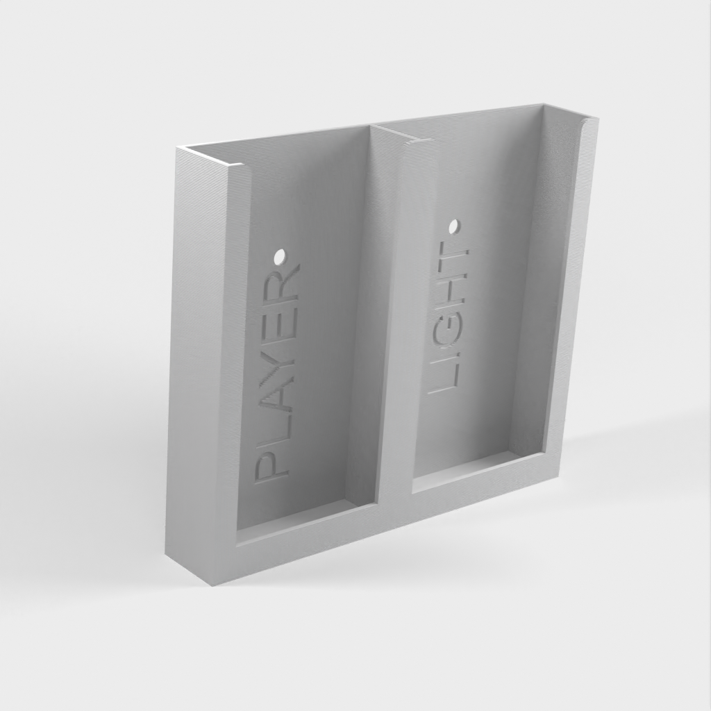Jedná se o jednoduchý držák, který pojme 2 dálkové ovladače. Lze jej instalovat buď vertikálně, nebo horizontálně. Můžete jej připevnit buď dvěma šrouby, nebo oboustrannou páskou, podle toho, co se do vaší domácnosti hodí nejlépe.