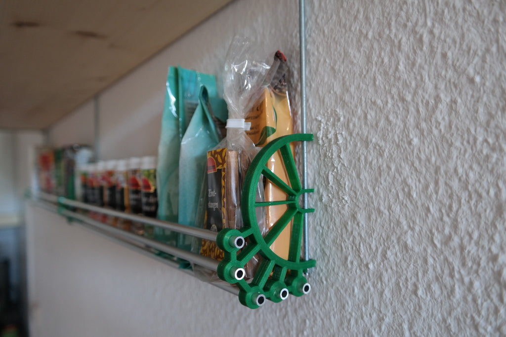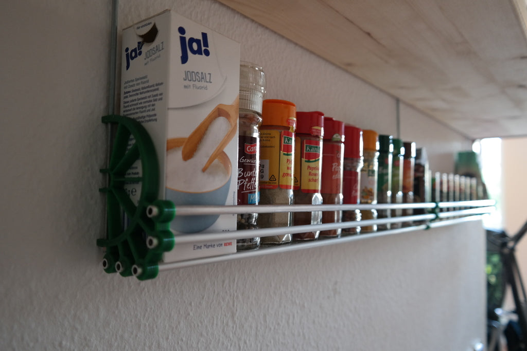 Police na koření je vyrobena z robustních hliníkových trubek M6, které zajišťují stabilní a dlouhotrvající konstrukci. Integrované závitové tyče a matice M4 přispívají k další pevnosti, takže vaše koření bezpečně drží na svém místě. Speciálně navržené tištěné spojovací prvky usnadňují nastavení a přispívají k čistému a modernímu vzhledu, který se hodí do většiny kuchyní.