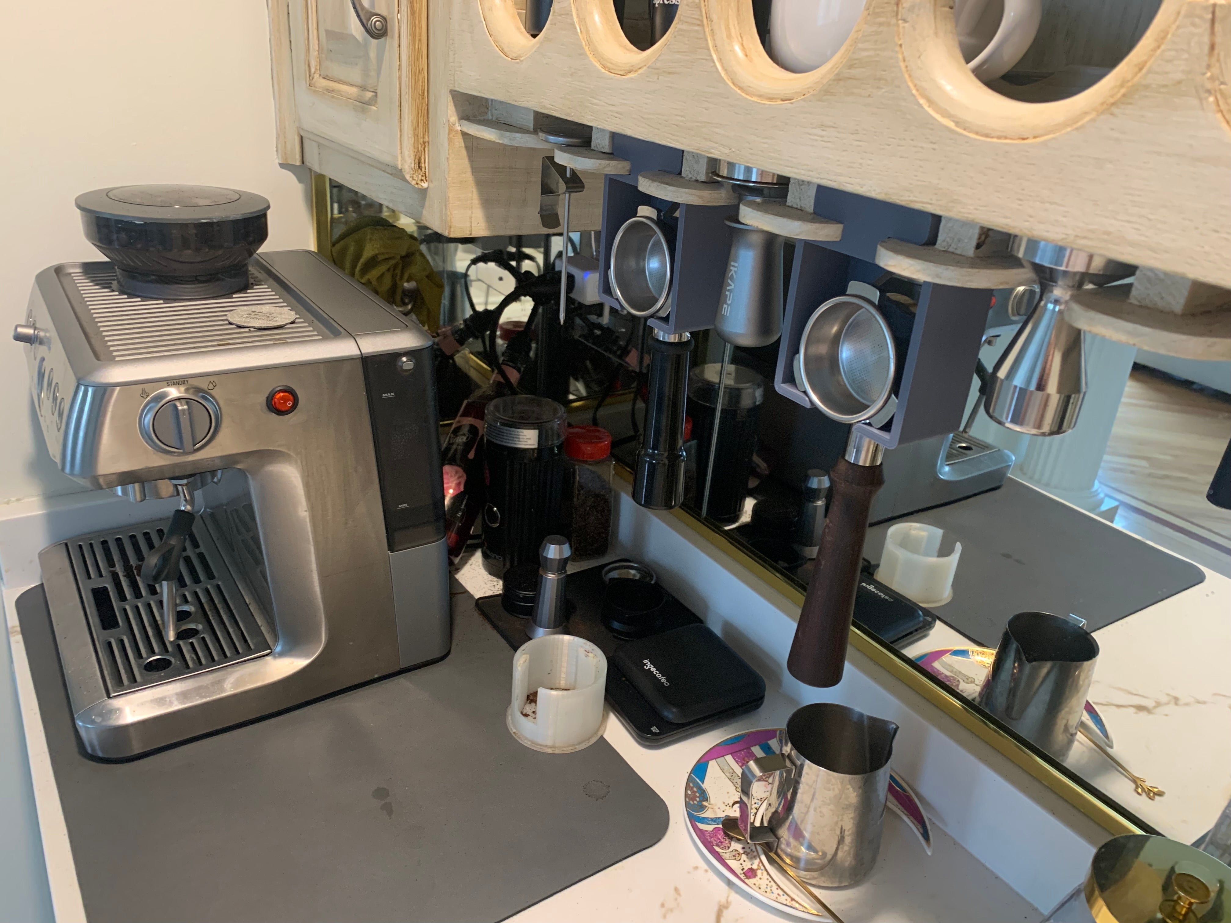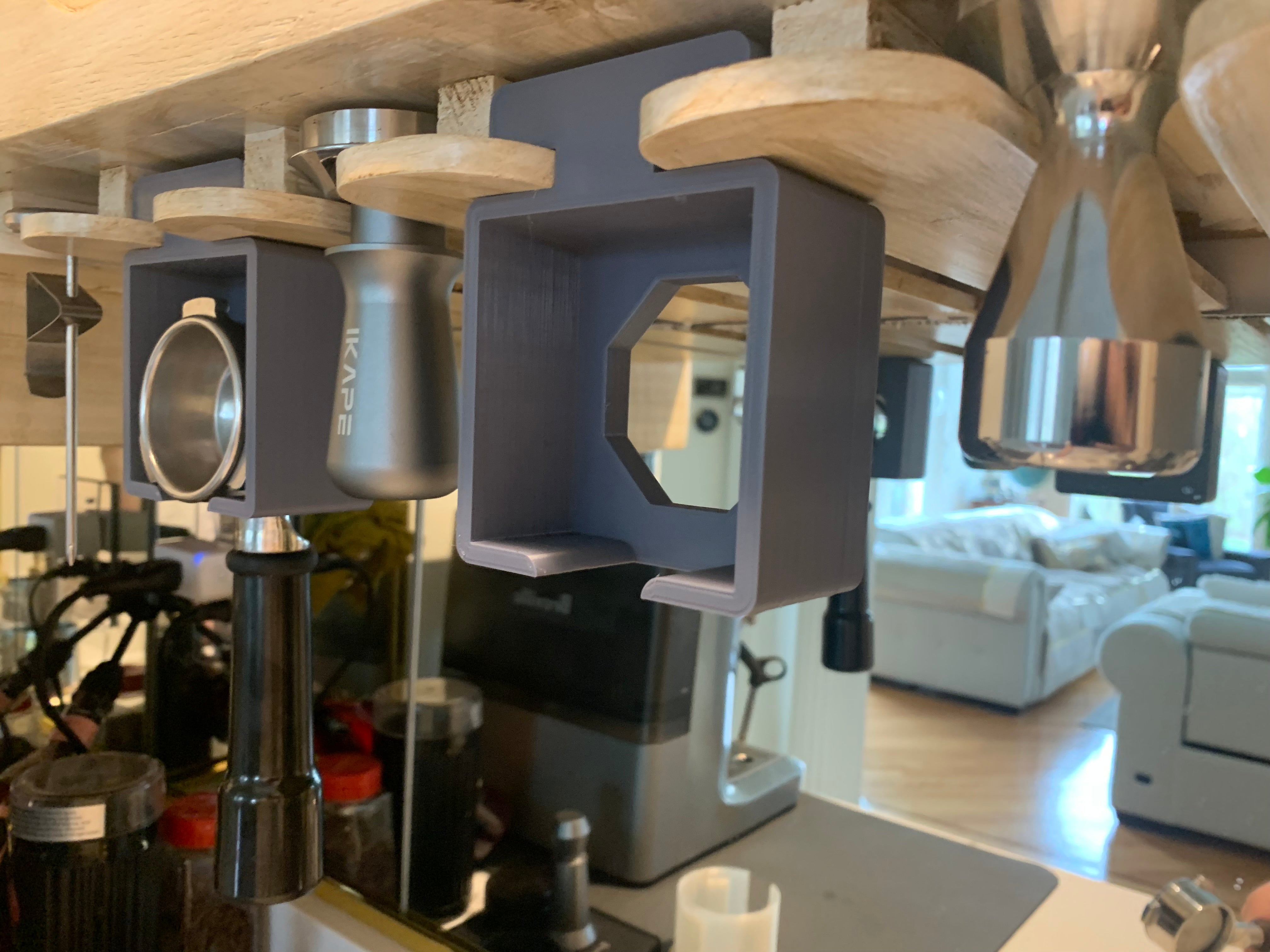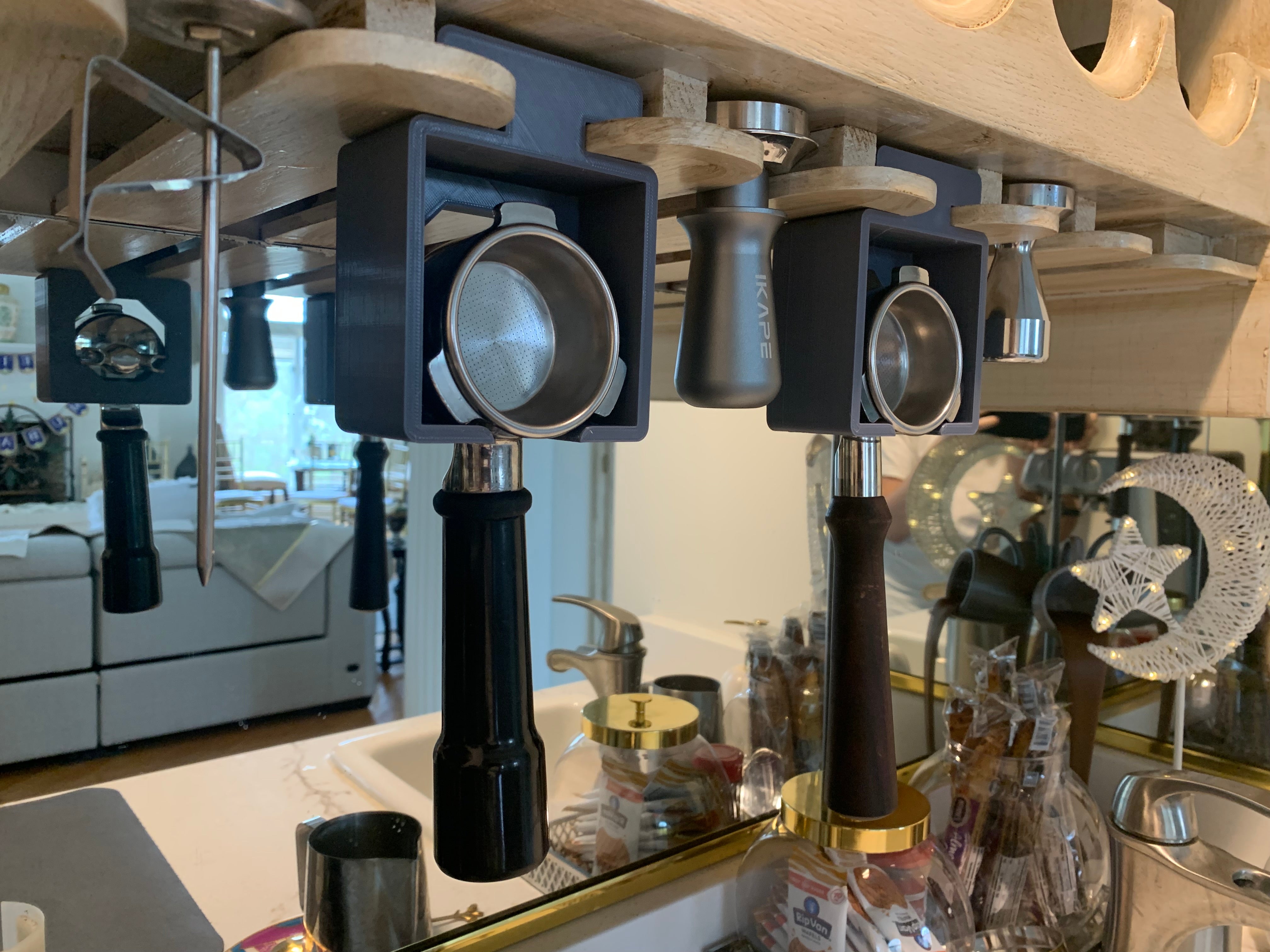 Pro milovníky kávy, kteří oceňují jak funkčnost, tak uklizenou kuchyni, nabízí tento chytrý držák portafilteru ideální řešení. Je navržen tak, aby využíval často přehlížený prostor pod vaší kuchyňskou skříňkou, kde je již nainstalován stojan na sklenice na víno, a proměňuje nepoužívaný prostor v praktické úložiště pro váš portafilter.