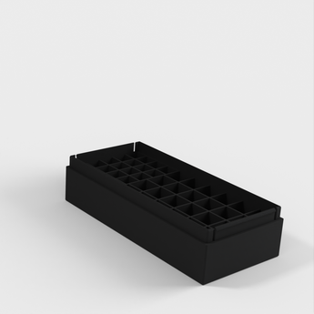 Bateriový box s prostorem pro 24 AA a 20 AAA baterií. Nabíjecí baterie jsou o něco tlustší než baterie nenabíjecí, do tohoto pouzdra se bez problémů vejdou oba typy.