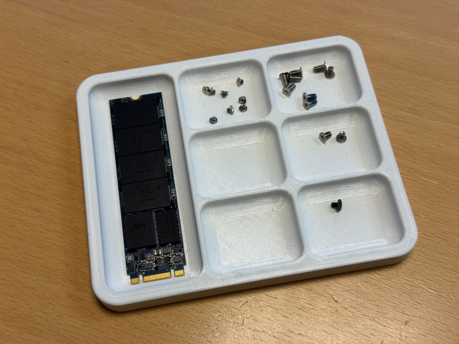 Tato praktická miska na šrouby je navržena tak, aby udržela pořádek v malých šroubech a podobných součástech, které se často používají v elektronice nebo jemné mechanice. Pomáhá oddělit a uspořádat různé typy malých šroubů, takže můžete snadno najít ten, který potřebujete, aniž byste ztráceli čas hledáním. Miska je ideální pro použití na pracovním stole, v bedně s nářadím nebo v zásuvce, kde přispívá k uklizenému a efektivnímu pracovnímu prostoru. Ať už sestavujete počítače, opravujete elektroniku nebo pracujete na hobby projektech, tento malý organizér zajistí, že vaše šrouby budou vždy po ruce a neztratí se.