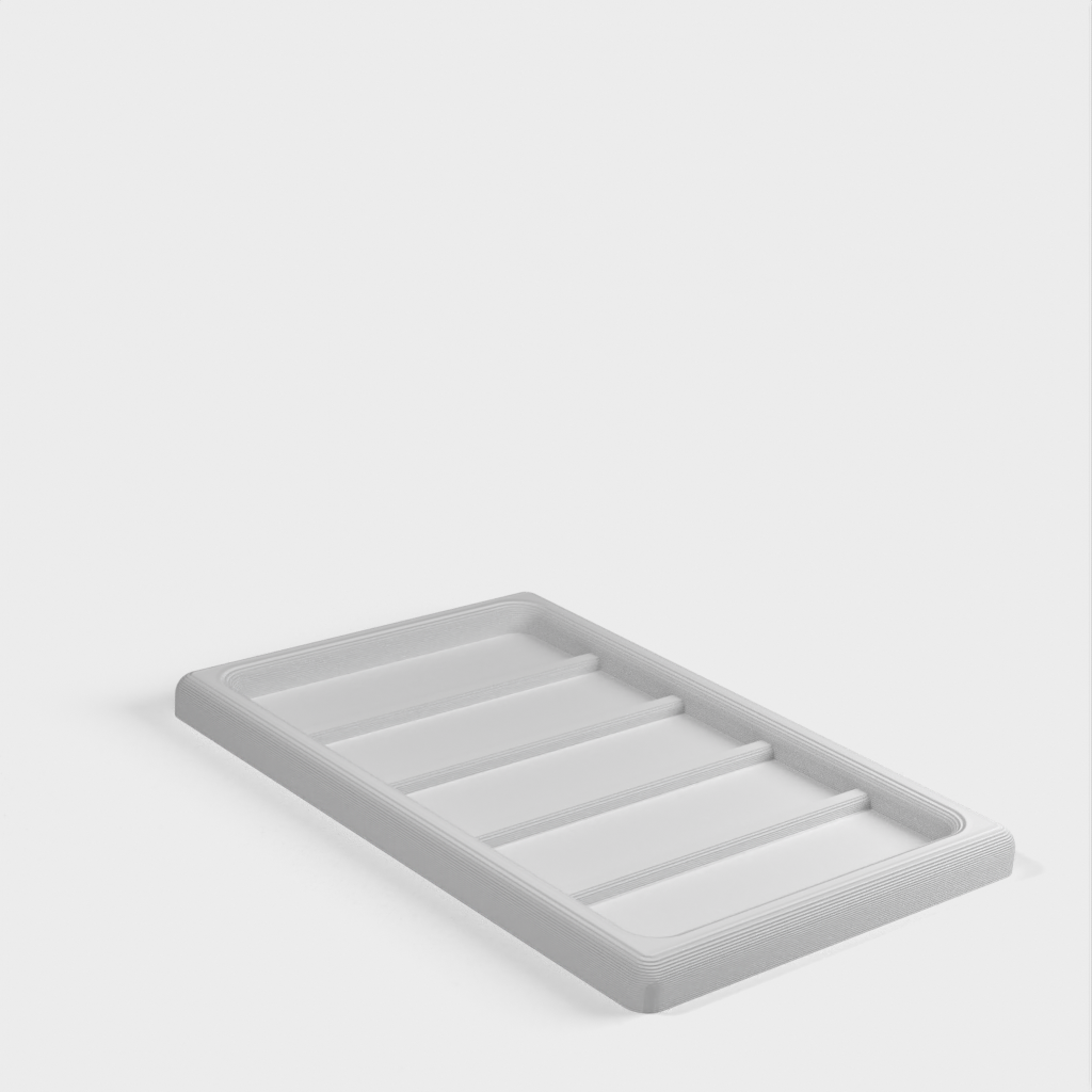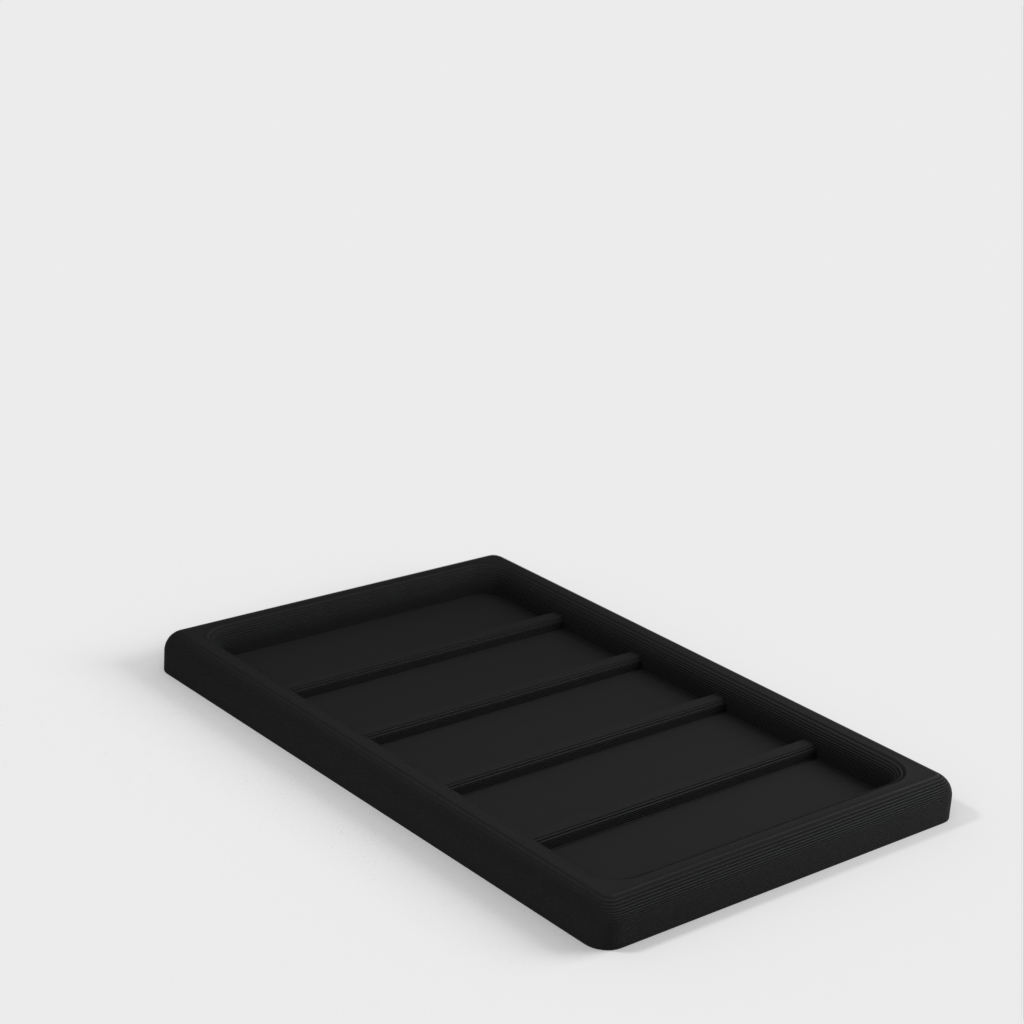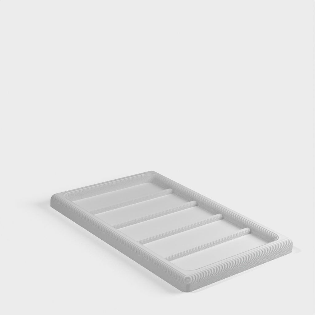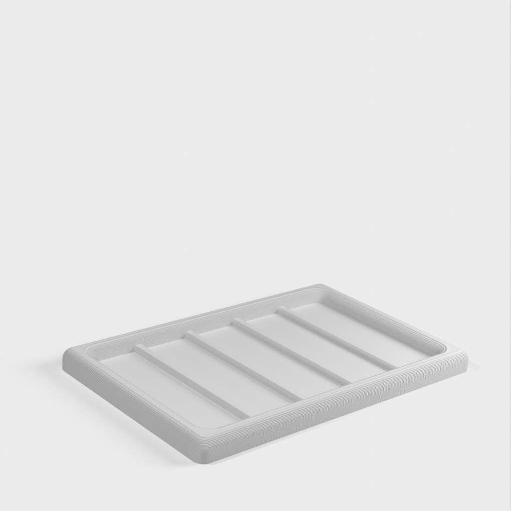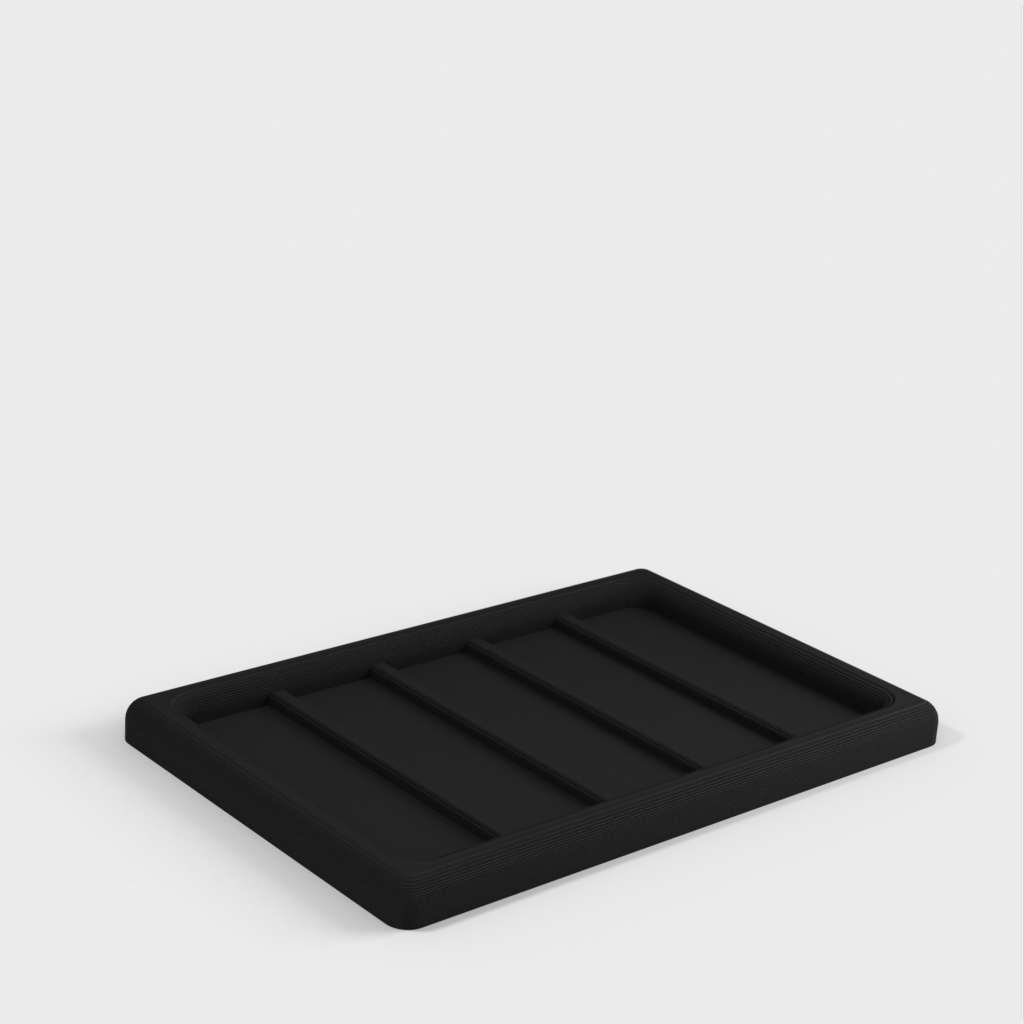 Tento jednoduchý odkapávač na příbory jsem navrhl v aplikaci Fusion 360. Pomocí modifikátoru vytvořte ve dně otvory.